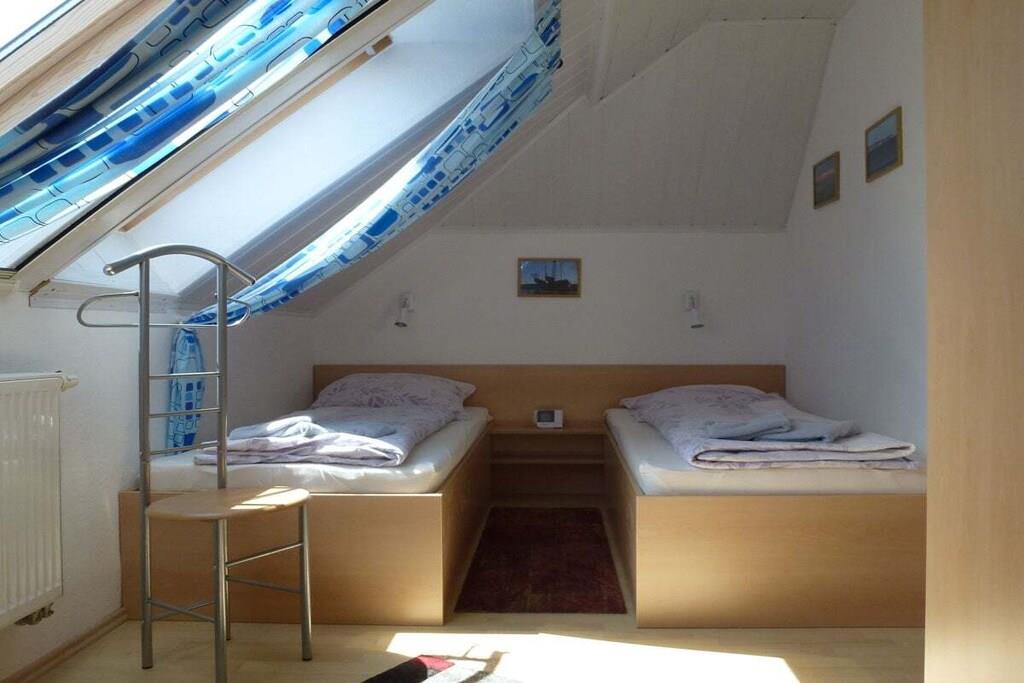 Unser Ferienappartement "Wittow" mit separatem Eingang ist für maximal 3 Gäste eingerichtet. Das Wohnzimmer ist mit einer Couch (für den dritten Gast), einer Essecke sowie mit SAT-TV-Gerät, Radio und DVD-Player ausgestattet. Sie finden eine Küche mit einer Küchenzeile mit Elektroherd (Ceranfeld), Kühl-Gefrierschrank, Mikrowelle und Kaffeemaschine. Im Schlafzimmer stehen zwei bequeme Einzelbetten mit Nachttisch und Leselampe; sowie ein Kleiderschrank und Sideboard. Das moderne, großzügige Bad ist mit Dusche, WC und Waschmaschine ausgestattet. Einen Hochstuhl stellen wir unseren jüngsten Gästen gerne kostenlos zur Verfügung. Bade- und Handtücher werden gestellt. Ihren PKW können Sie vor dem Haus an den hauseigenen Parktaschen abstellen.