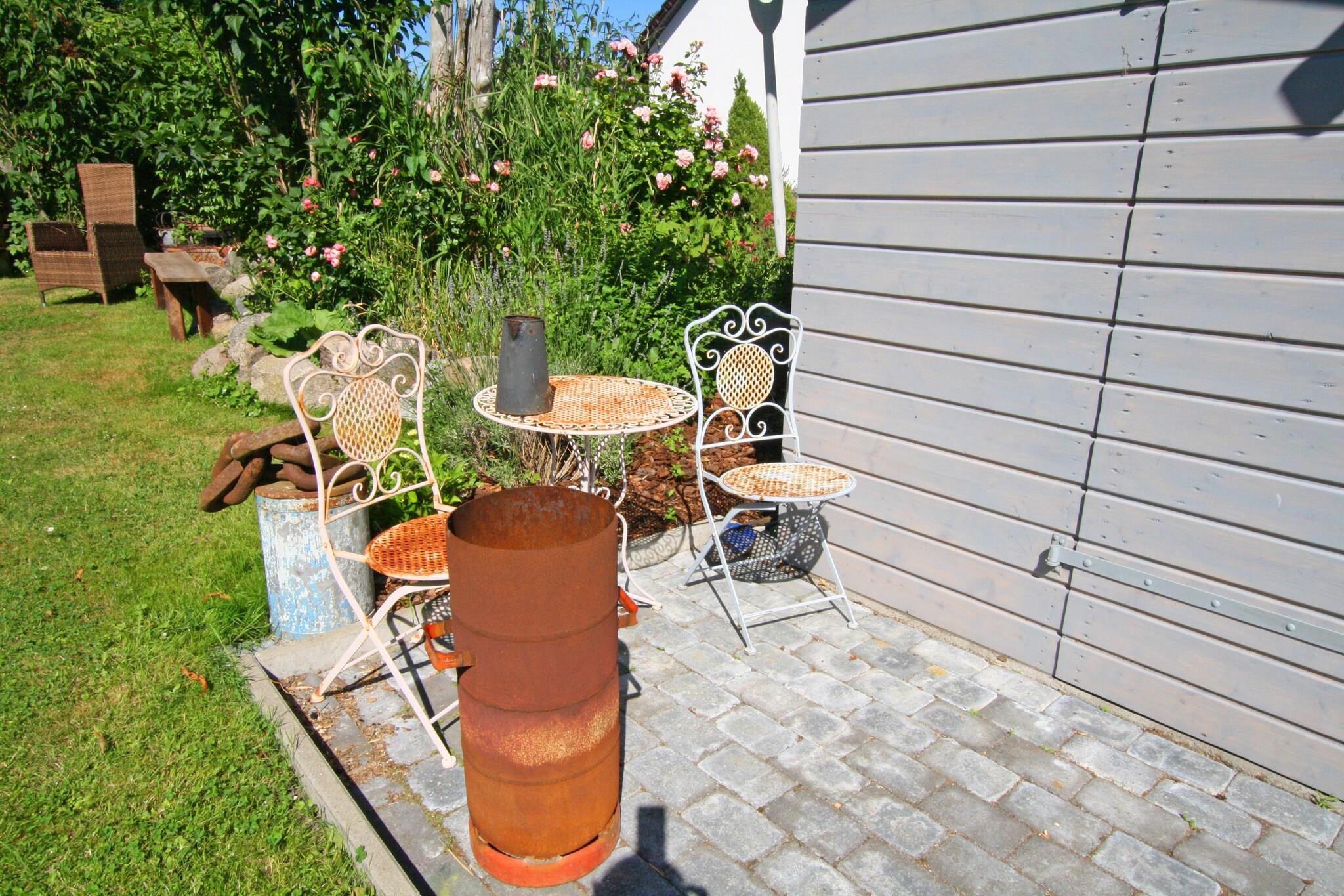 Stueetage: På 1. etage: (åbent køkken(elkedel, brødrister, komfur(Komfur med fire kogeplader, glaskeramisk), emhætte, kaffemaskine, ovn, opvaskemaskine , køleskab), stue / spisestue(Fjernsyn(parabol), spisebord(3 personer), sofahjørne), soveværelse(dobbeltseng), soveværelse(enkeltseng), badeværelse(bruser, håndvask, toilet), Repos) radio, varme, terrasse, have(deles med ejer og andre gæster), havemøbler, grill, parkering, Parasol, barneseng, barnestol, Sengelinned inkl.