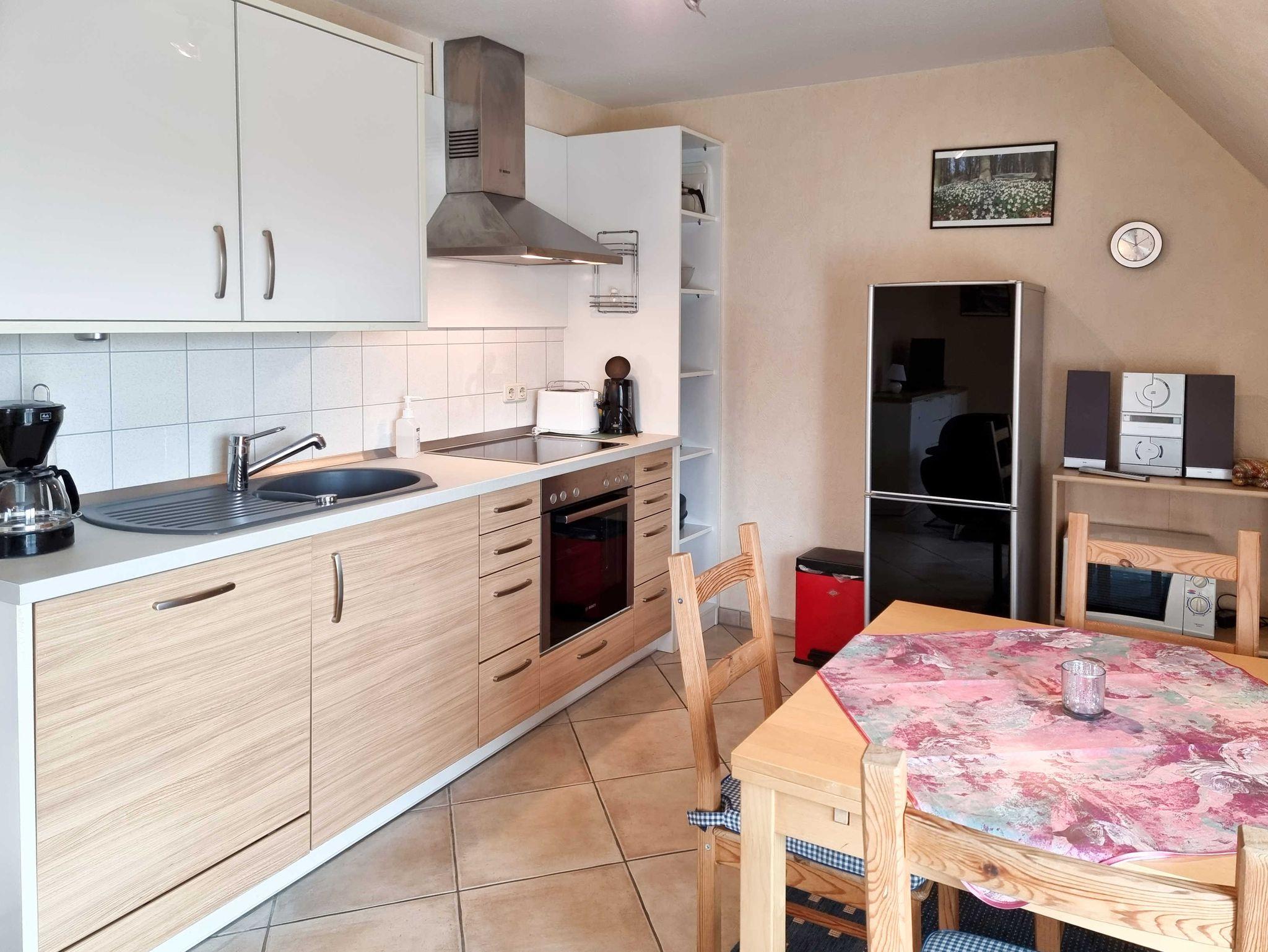 • Küchenzeile mit Serankochfeld, Spülmaschine, Backofen, Mikrowelle, Kühlschrank mit Tiefkühlschrank (3 Fächer), Kaffeemaschine, Wasserkocher, Toaster u.a. Küchenutensilienh