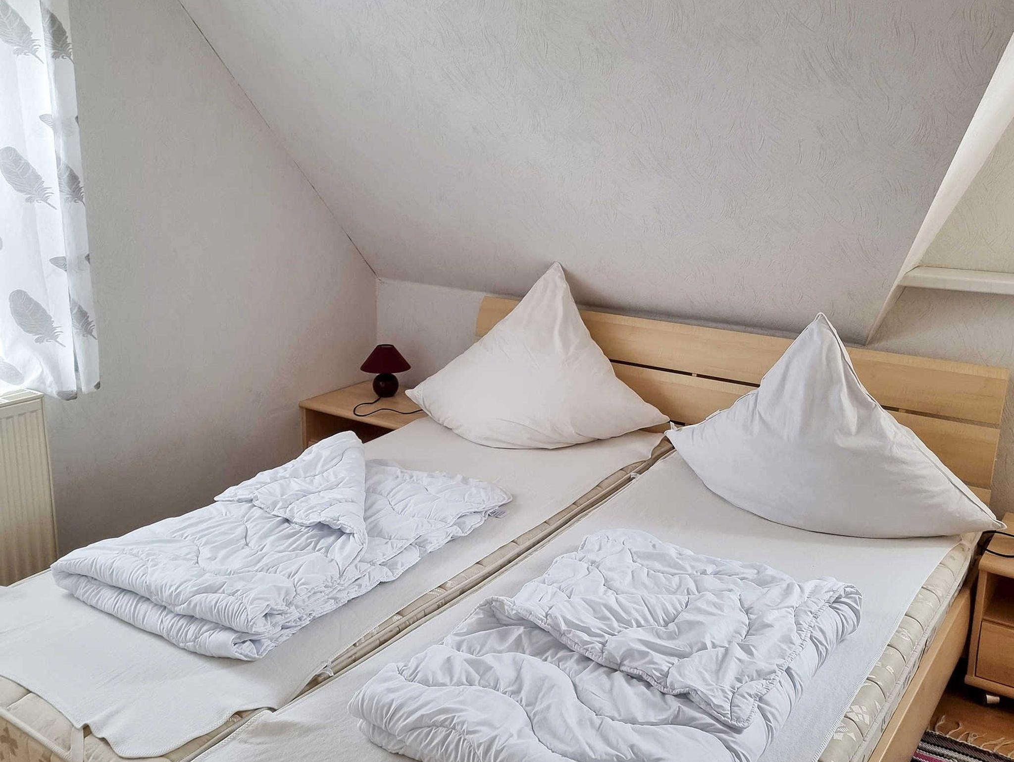 Die Ferienwohnung Johanna liegt im Obergeschoß und Dachgeschoß der Doppelhaushälfte. Mit einer Wohnfläche von ca. 65 qm bietet die Ferienwohnung Platz für bis zu 5 Personen.