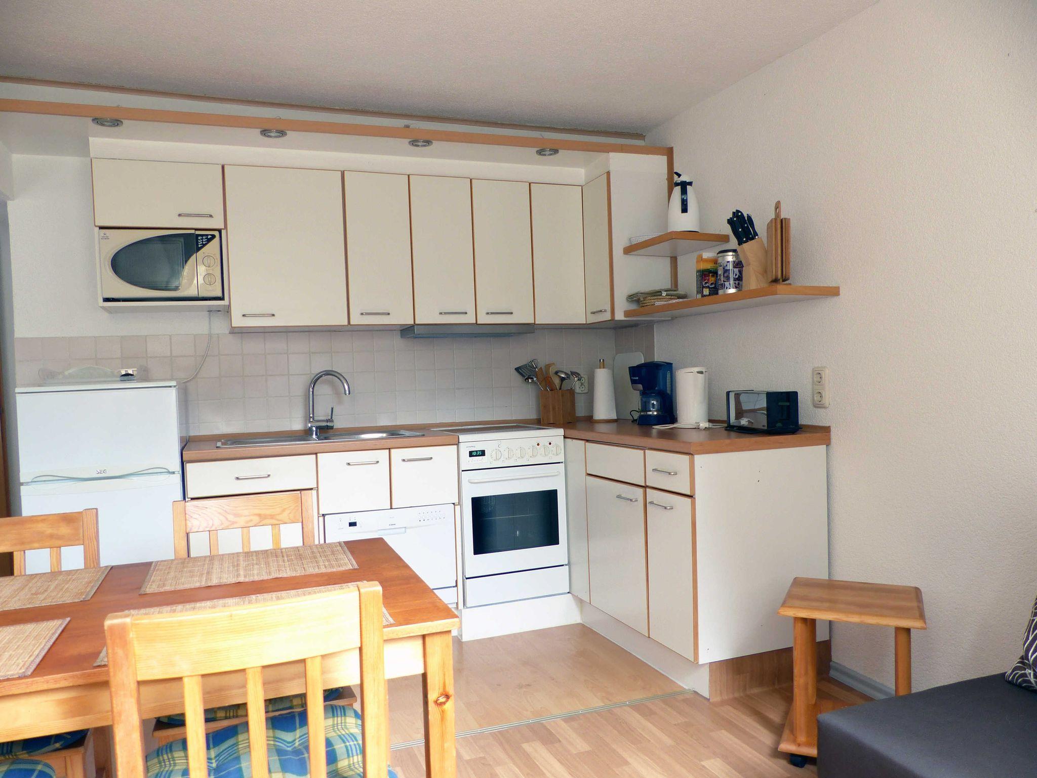 Die in beiden Wohnungen komplett ausgestattete Küchenzeile verfügt über einen Kühlschrank mit Gefrierfach, 4-Kochstellen-Ceranfeld, Backofen, Mikrowelle, Geschirrspüler, Wasserkocher, Kaffeemaschine, Toaster, etc.
