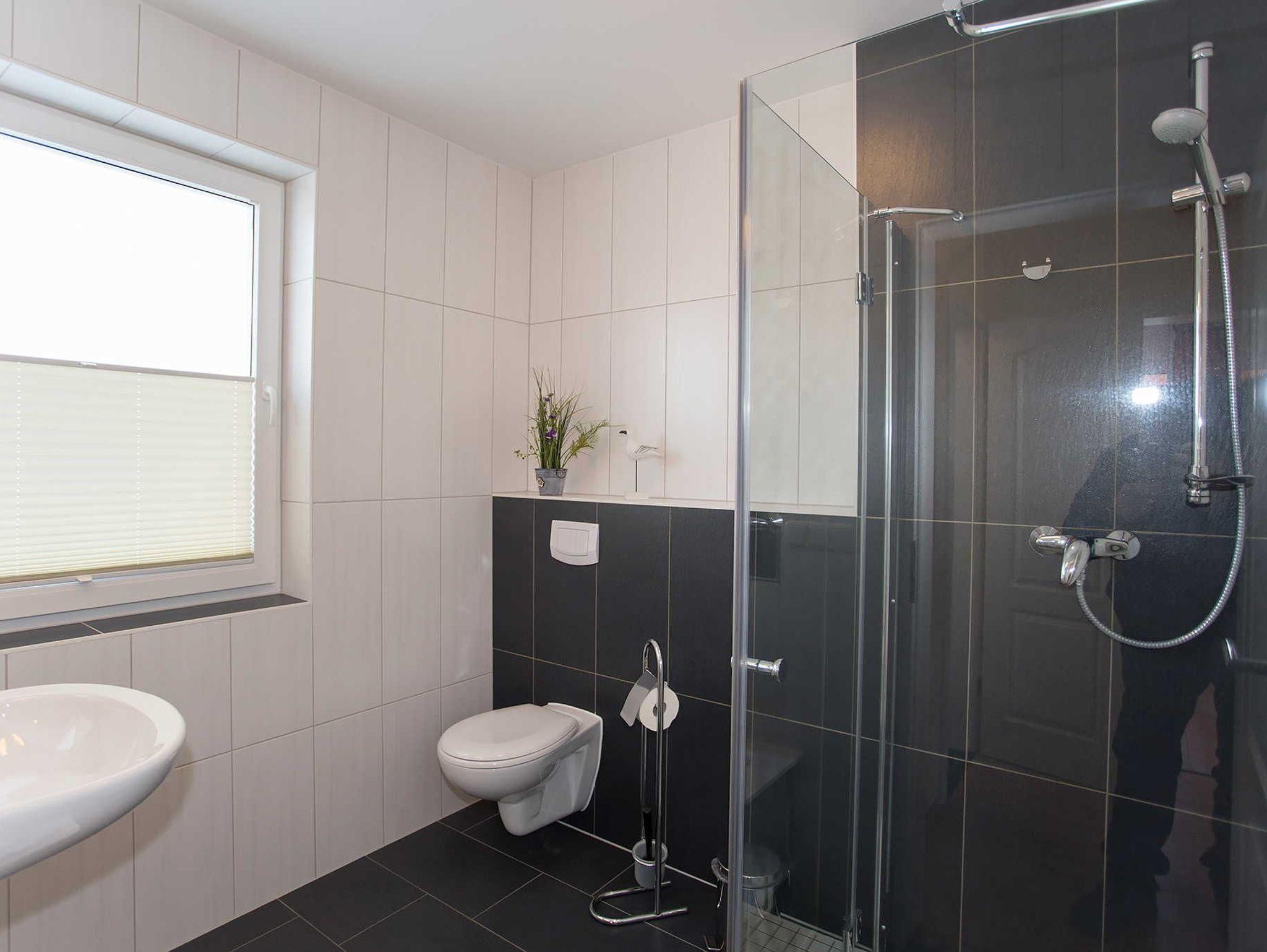 Das Bad hat eine ebenerdige Dusche und ein Fenster (siehe Beispielbild bei den Außenansichten). Die Wohnküche ist voll ausgestattet. In den Ferienwohnungen im Haus Hafenkieker in Wiek darf nicht geraucht werden.