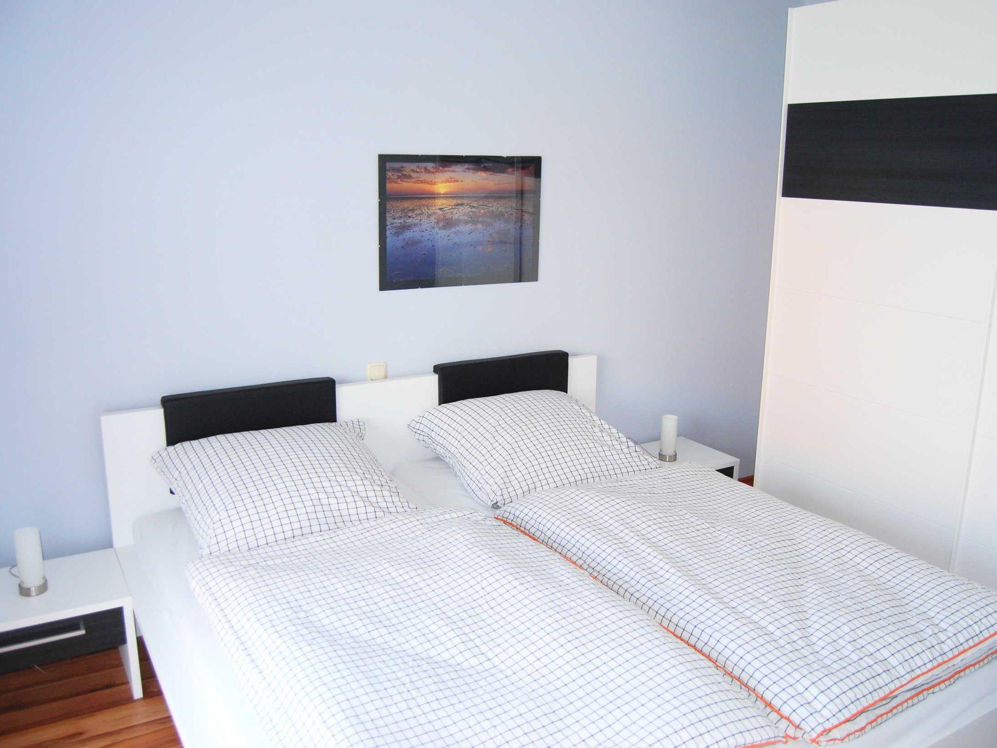 Das Schlafzimmer ist mit einem Doppelbett (2,00 x 1,80m, einzelnen 21cm dicken Komfort-Kaltschaum-Matratzen und sehr guten Lattenrosten) sowie einem großen Kleiderschrank ausgestattet.