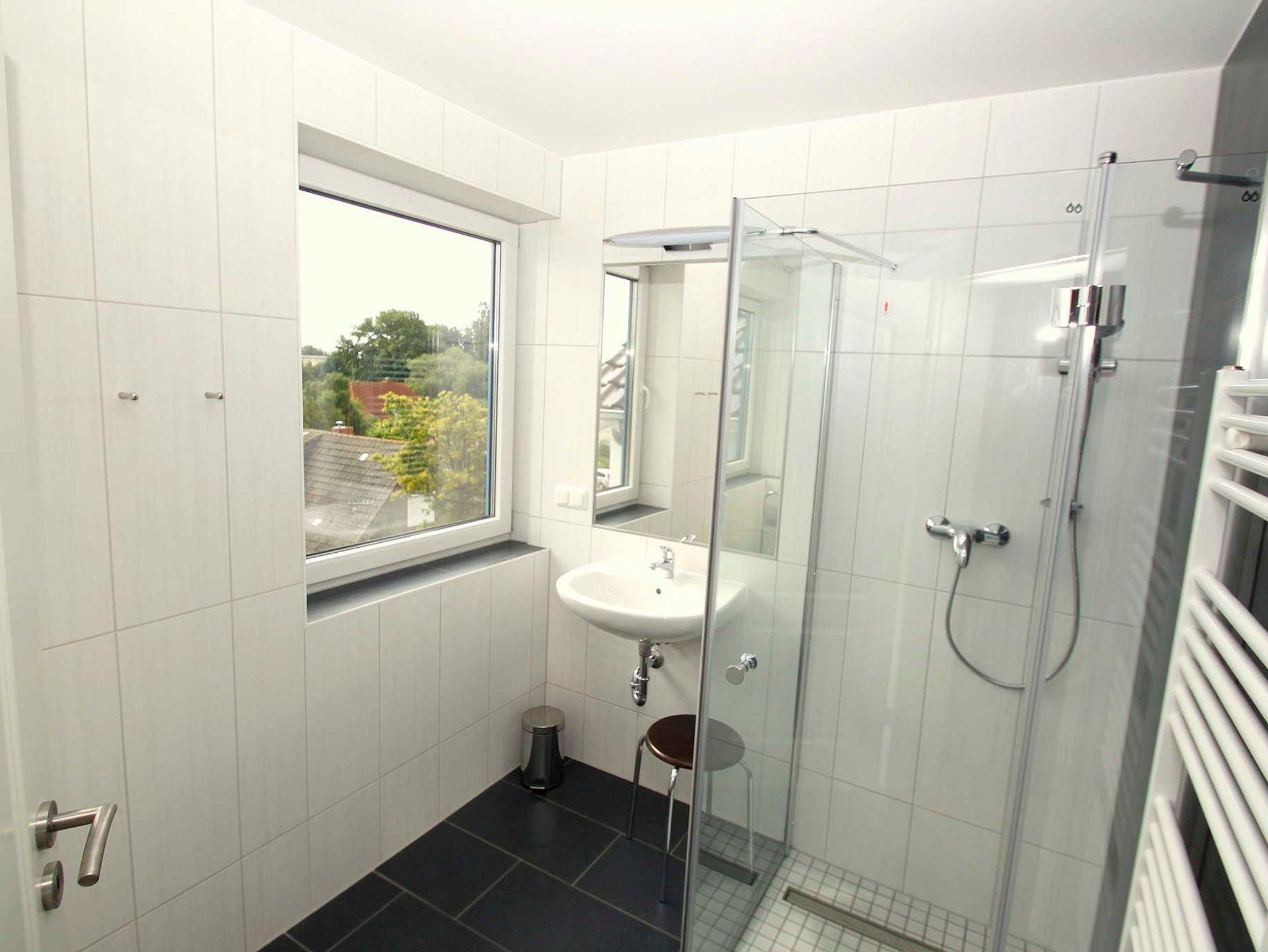 Das Bad hat eine ebenerdige Dusche und ein Fenster (siehe Beispielbild bei den Außenansichten). Die Wohnküche ist voll ausgestattet. In den Ferienwohnungen im Haus Hafenkieker in Wiek darf nicht geraucht werden.