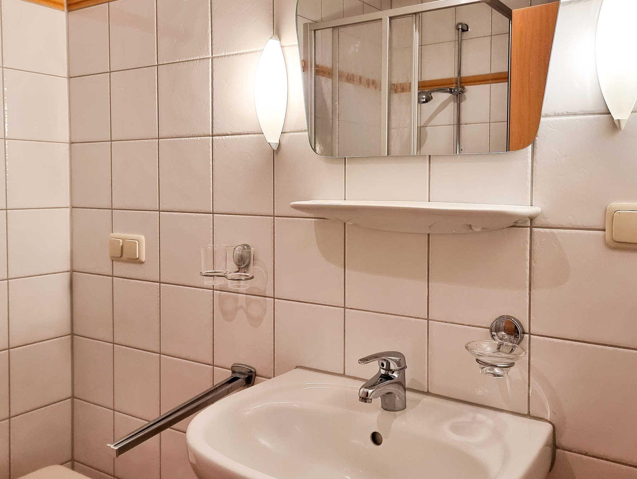 • Dusche/'WC, Waschbecken und Ablagemöglichkeiten