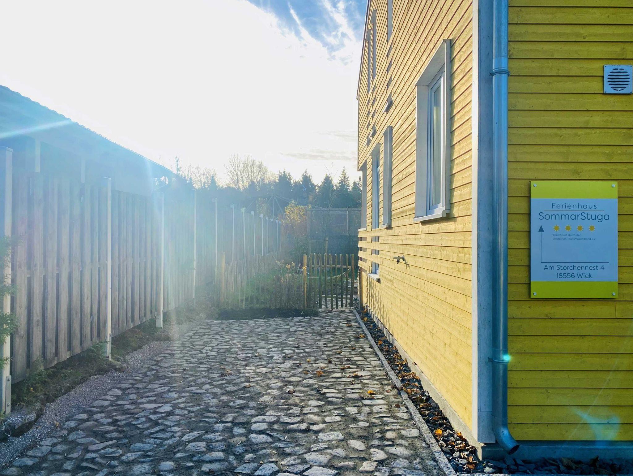 Die kleine individuelle Feriensiedlung grenzt unmittelbar an die Ostsee (Wieker Bodden). Es sind nur wenige Meter zum Wasser. Durch den seichten Zugang sind ideale Badestellen überall und Möglichkeiten für Wassersportarten aller Art. Ein Spaziergang führt entlang der Ostsee-Promenade vorbei an der Surf- und Kiteschule zum Yachthafen Wiek. Dort eröffnet sich das beschauliche Dorf Wiek mit seinen Restaurants und kleinen Geschäften. Ein Spaziergang vom Haus SommarStuga in nördlicher Richtung führt durch filigrane Schilflandschaften zum kleinen Hafen Kuhle. Wiek ist wegen seiner naturbelassenen Umgebung und der Ruhe nicht nur Zauberland für Wanderer und Radler, sondern auch ein Paradies für Wassersportler. Für Einsteiger und Geübte werden hier zahlreiche Kurse im Surfen und Kiten angeboten.