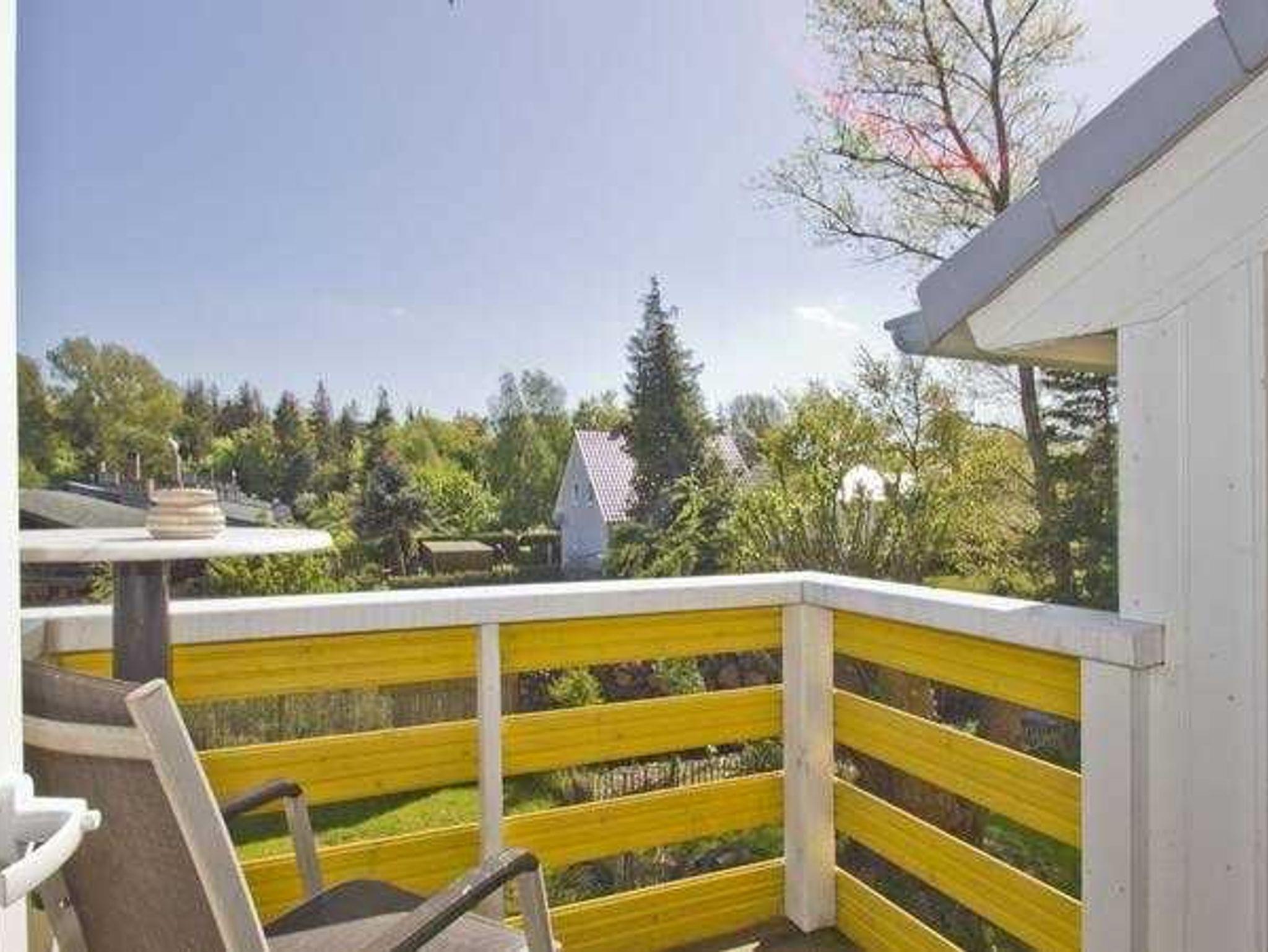 Erwärmung über Fußbodenheizung. Bluetooth Stereo-Anlage, Wlan, 2 PKW-Stellplätze und eine Waschmaschine zur kostenfreien Benutzung. Über die Balkone, Loggien und den Garten seitlicher Blick auf die Ostsee (Wieker Bodden).
