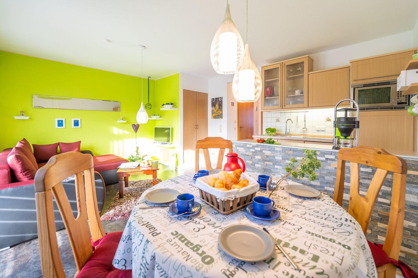 Mit bodentiefen Fenstern und einer offenen Wohnküche bietet die Ferienwohnung „Löweneckerchen“ ein helles Quartier für zwei Personen. Ein separates Schlafzimmer sowie eine sonnige Südterrasse laden zum Entspannen ein. Einkaufsmöglichkeiten, Restaurants und der Yachthafen von Wiek sind in wenigen Gehminuten erreichbar.