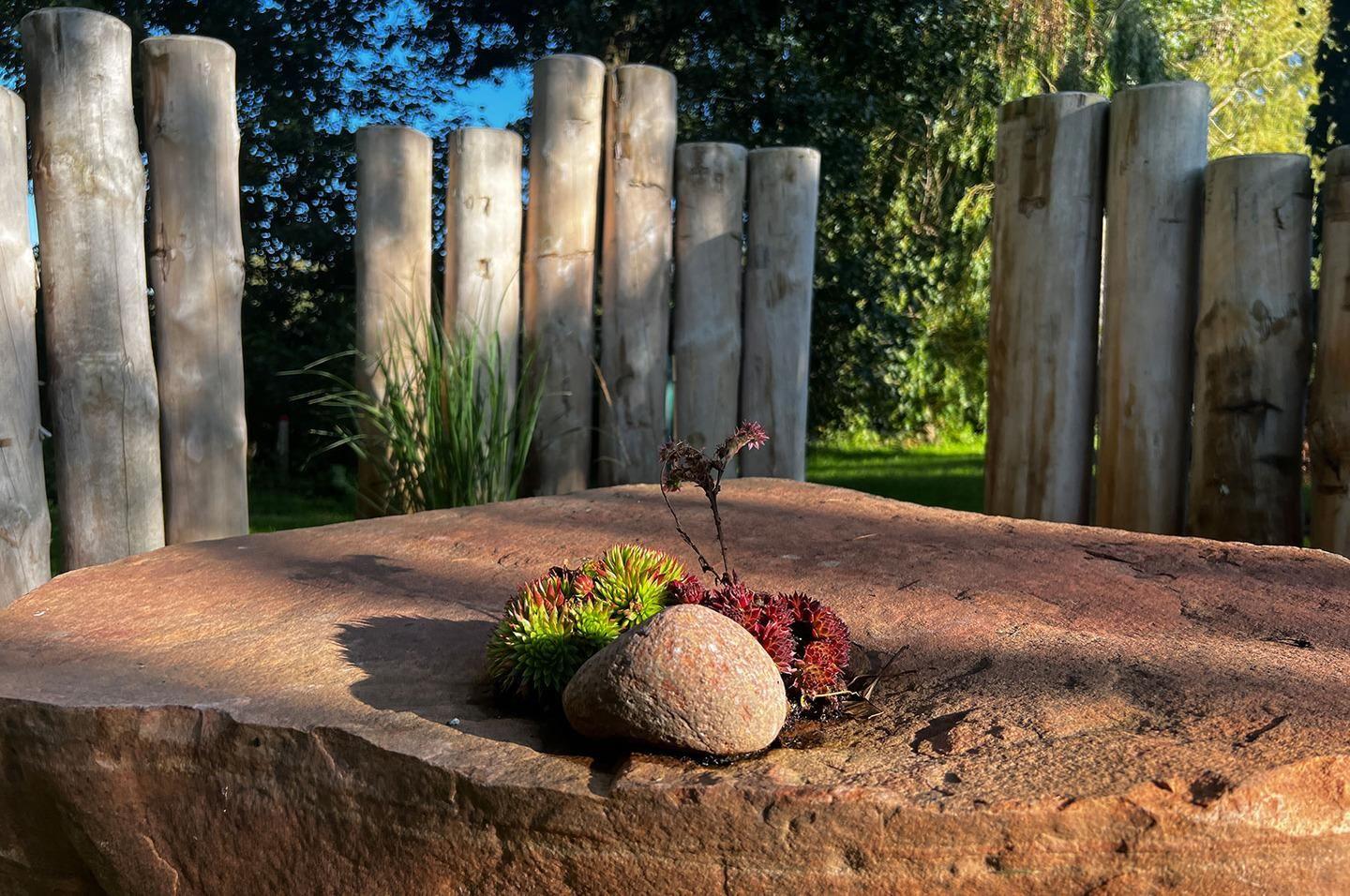 Das ca. 750?m² große Grundstück mit umlaufender Terrasse, geschütztem Grillplatz, sonnigem Balkon und liebevoll angelegtem Garten lädt zum Entspannen ein. Ein Carport mit E-Bike-Ladestation ist ebenfalls vorhanden.