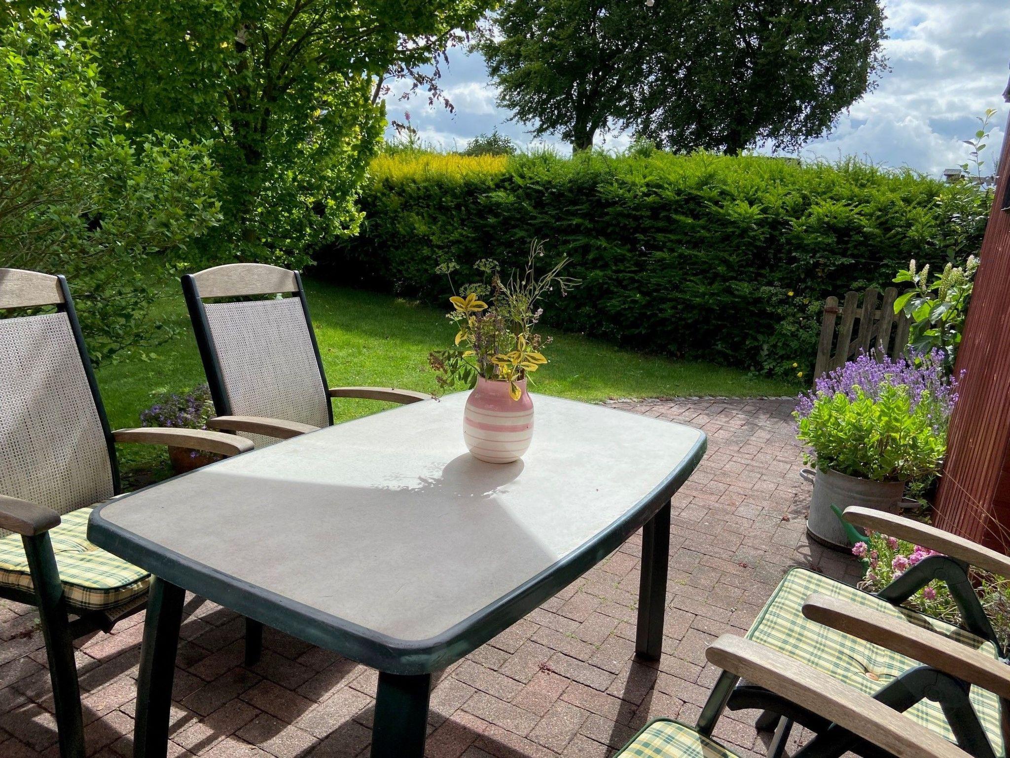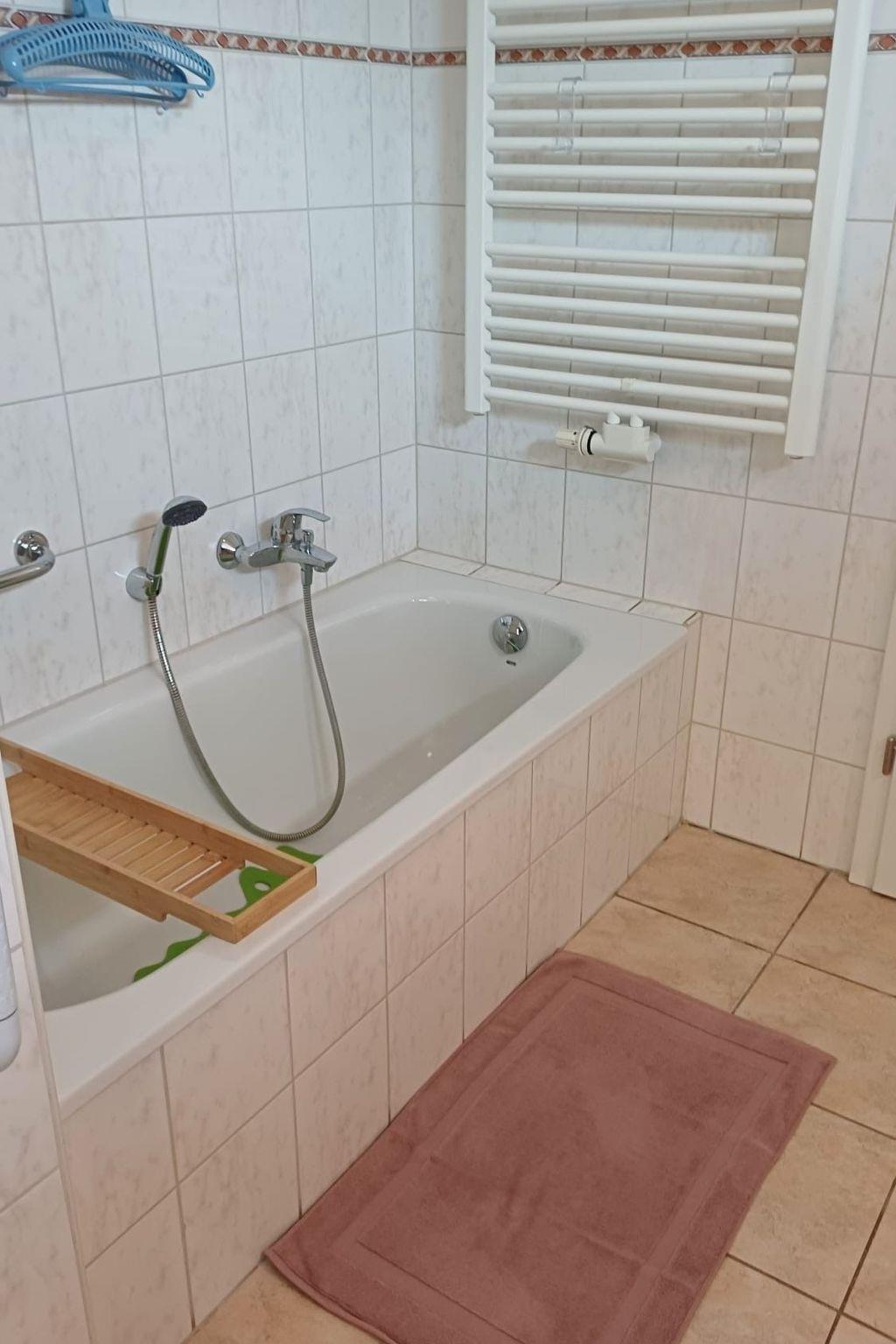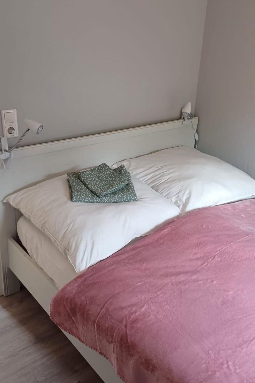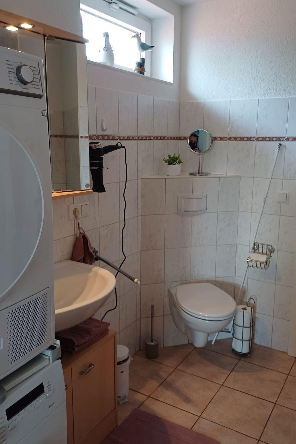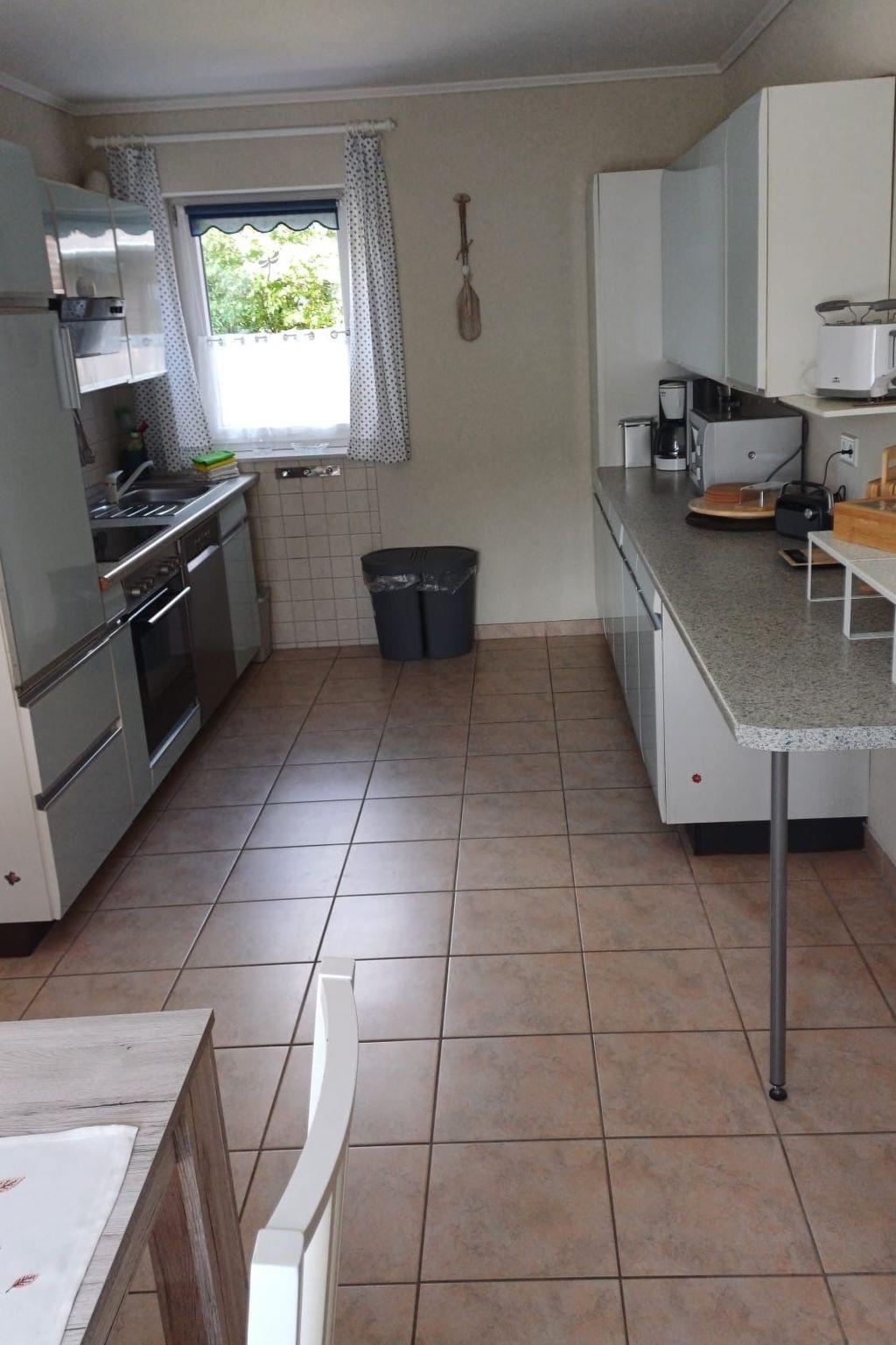 You live in an 80sqm large, renovated granny flat with separate entrance, car park and terrace in a quiet residential area in a cul-de-sac. The ground floor, lovingly furnished non-smoking flat has 2 bedrooms with double beds 180cm x 200cm and 140cm x 200cm. The large kitchen is fully equipped and offers seating for 6 people. The living room has a modern XXL sofa, satellite TV, armchair and stool for chilling out or reading. The south-facing terrace is furnished with garden furniture and sun loungers including parasol.