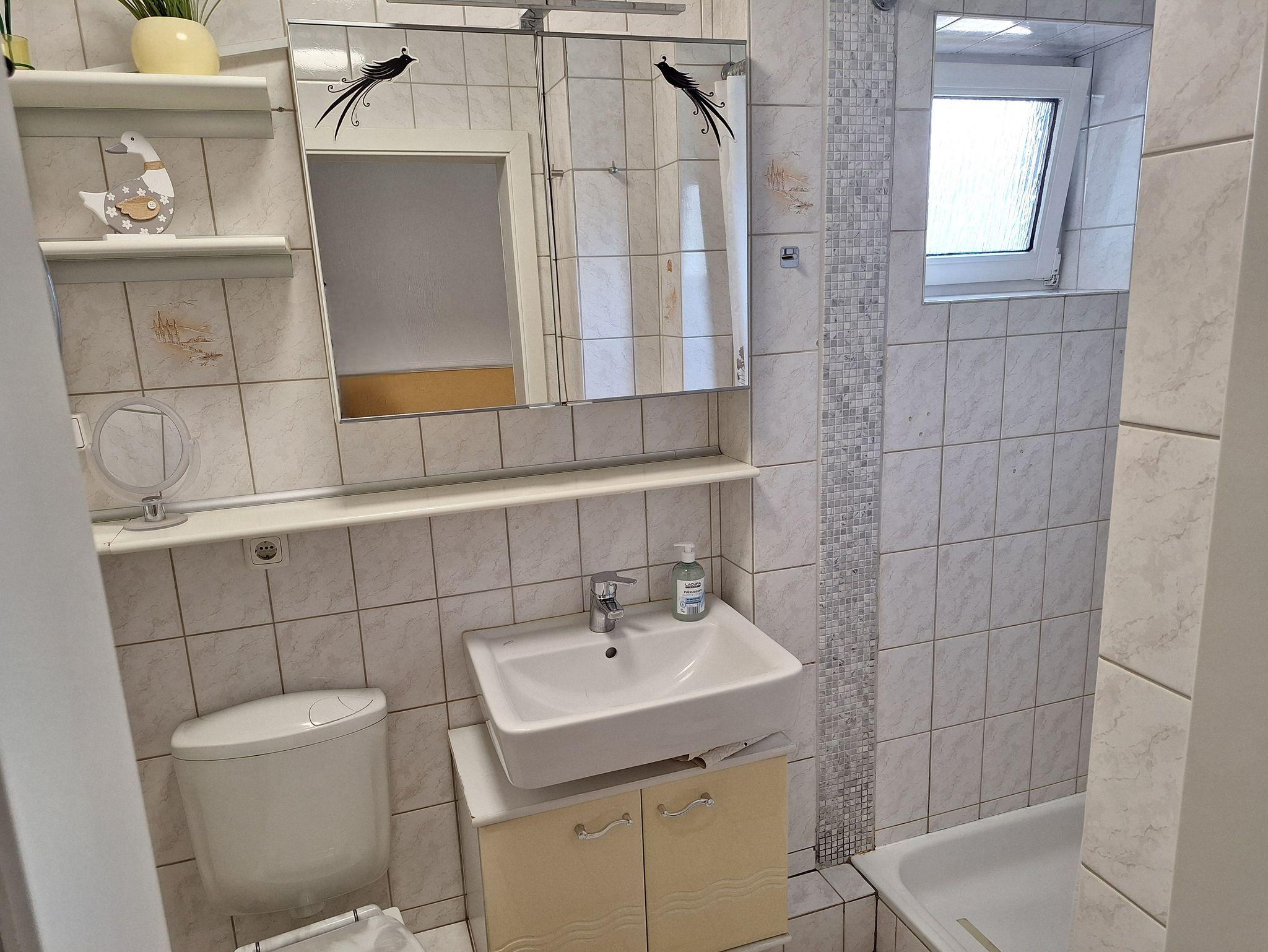 Freundliche helle Wohnung, ruhige Lage, Parterre, Fliesen und Laminat, eigener Eingang, eigene Terrasse , separate kpl. ausgestattete Einbauküche mit Fenster, Sitzplatz, Geschirrspüler, 2 Fahrräder vorhanden