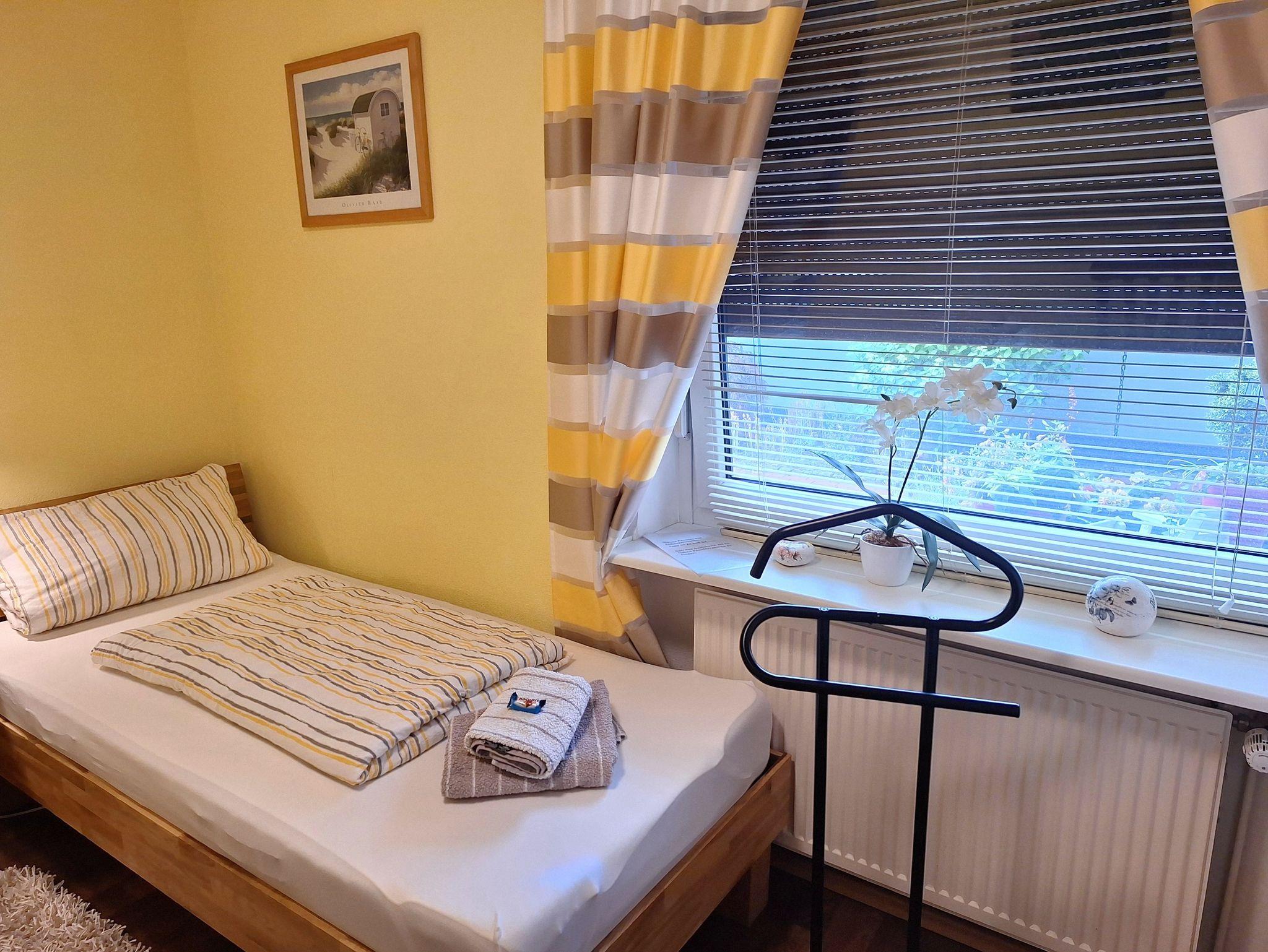 1 ruhiges Schlafzimmer mit 2 Einzelbetten, Fenster mit Rollladen,