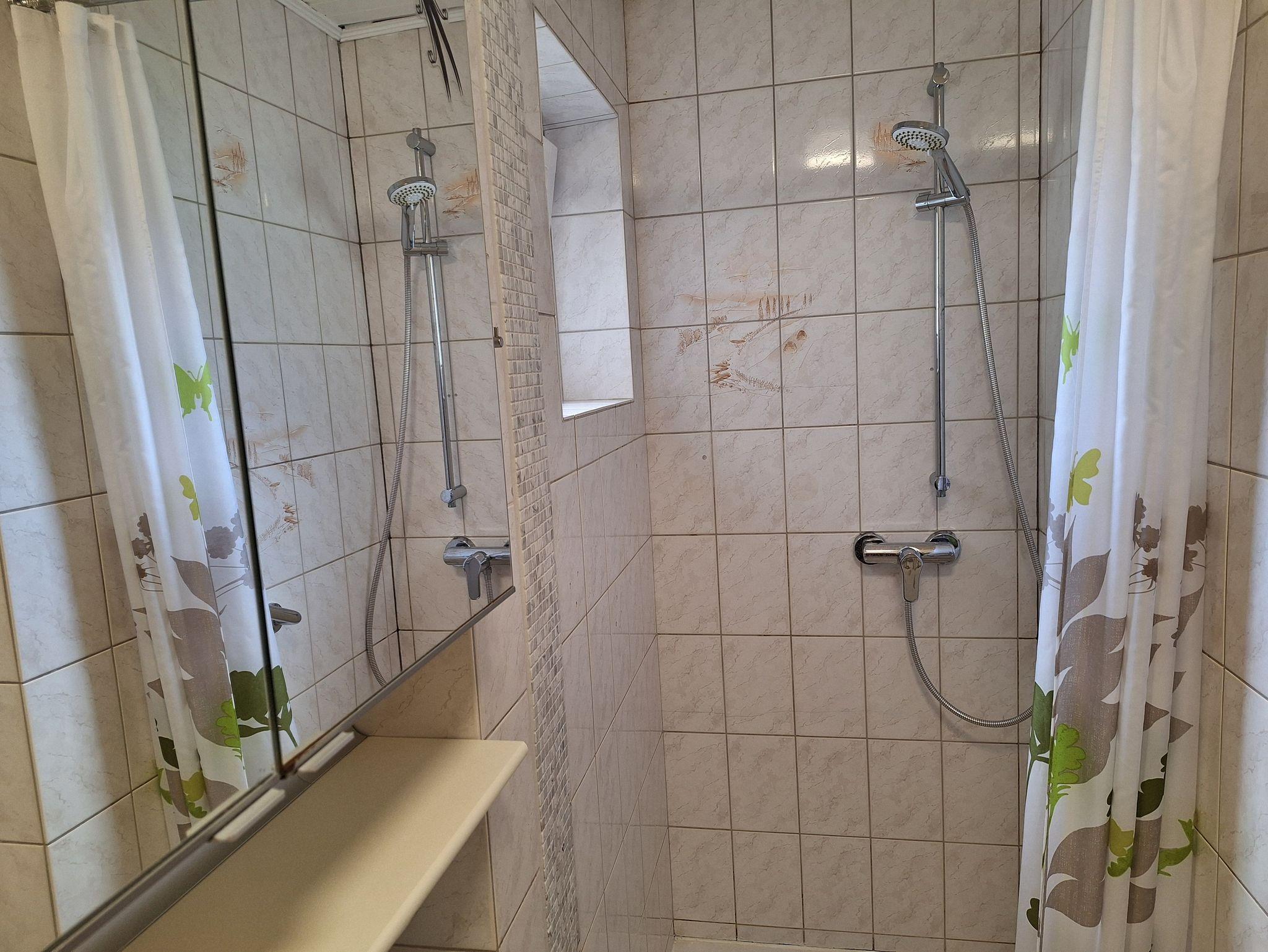 Helle Dusche, WC, mit Fenster, Föhn vorhanden