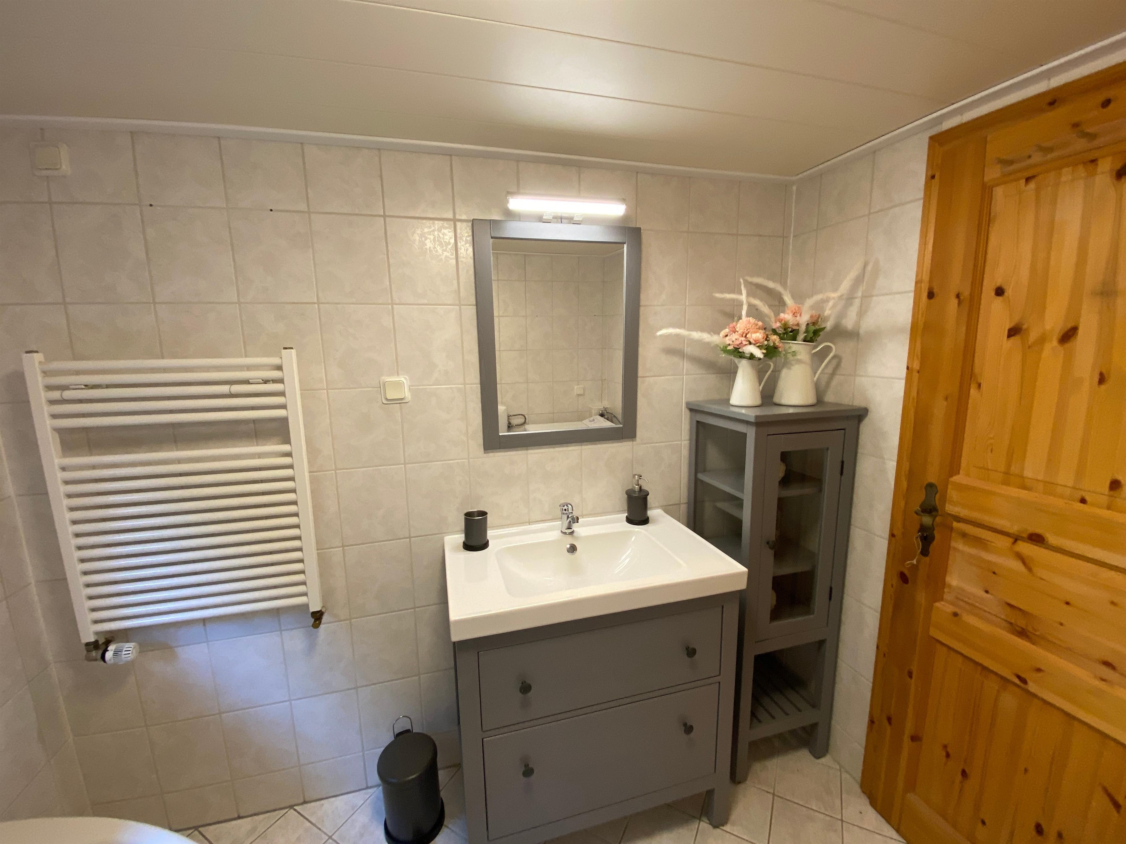 Das Bad verfügt über eine Badewanne. Eine Waschmaschine ist natürlich auch vorhanden.