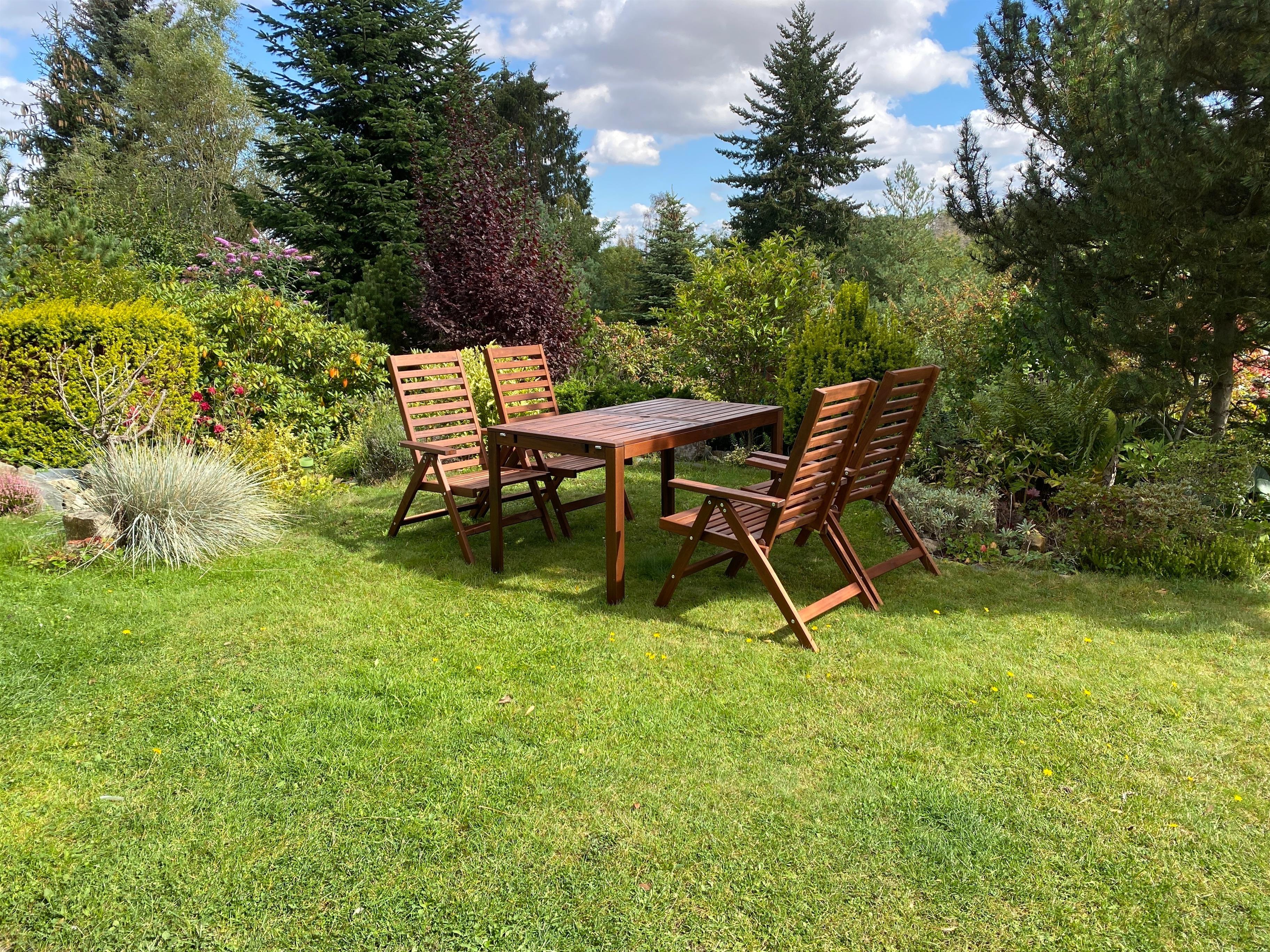 In dem 500 qm große, liebevoll gestalteten Garten, mit Gartenmöbeln und Grill kann man den Sonnenuntergang genießen.