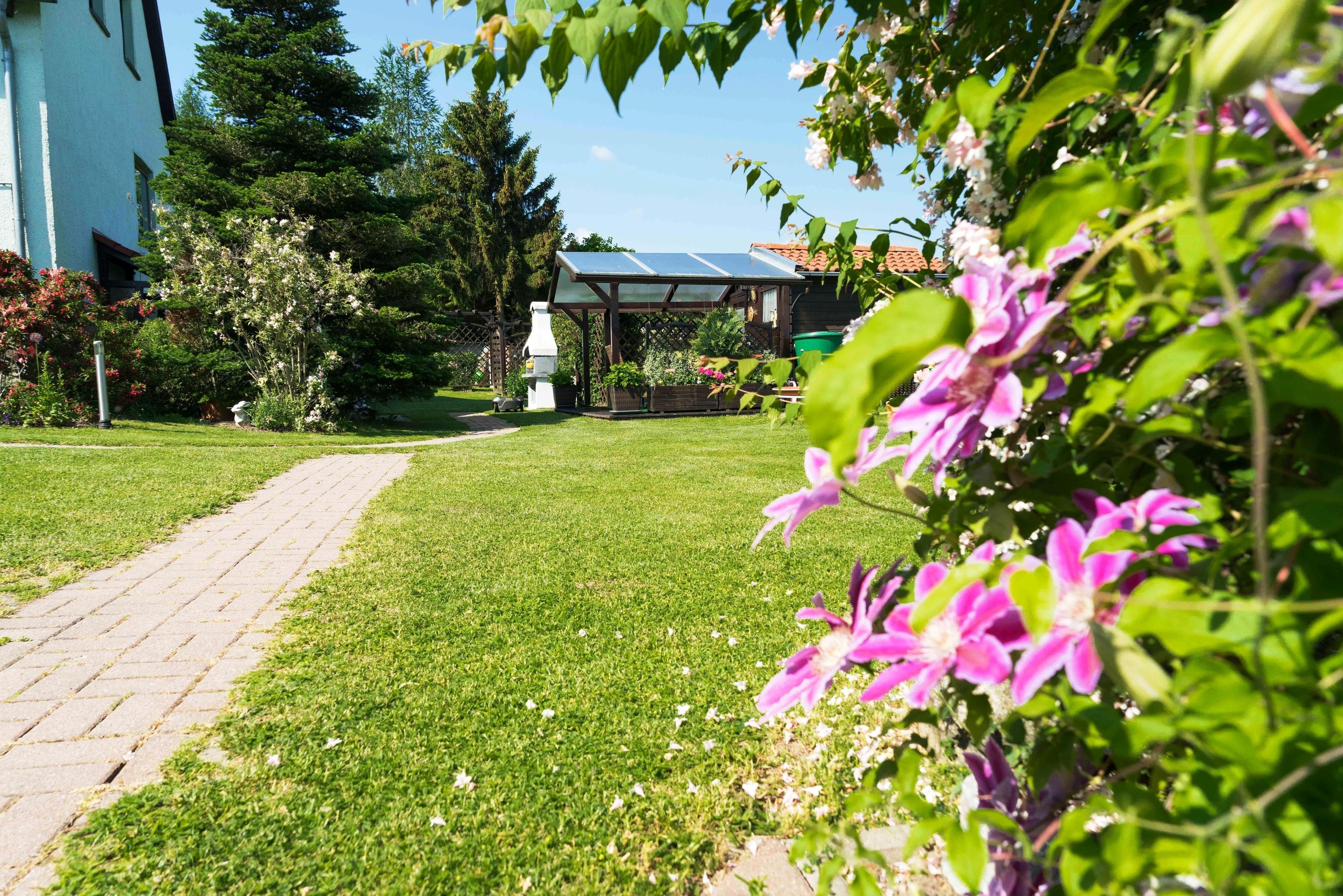 Im herrlichen Garten könnt ihr entspannen und die Ruhe und Natur genießen. Die Terrasse und die überdachte Veranda laden zum Grillen und gemütlichem Plaudern ein.