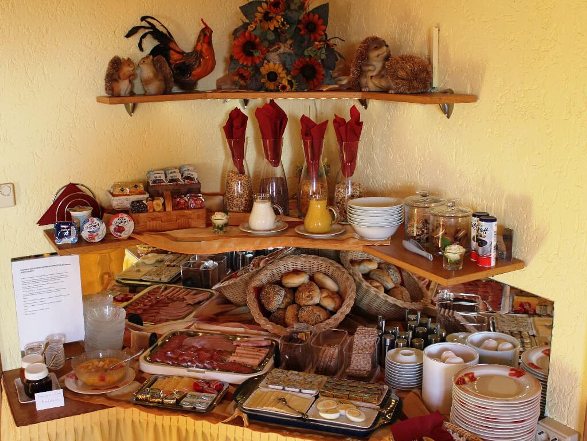Damit Sie gut in den Tag starten, können Sie sich an unserem reichhaltigen Frühstücksbuffet stärken. Zudem bieten wir Ihnen einen Kaffee und Snackautomaten, sowie eine Terrasse mit Grillmöglichkeit. Motorräder und Fahrräder können Sie gerne kostenlos in einer abschließbaren Garage unterstellen.