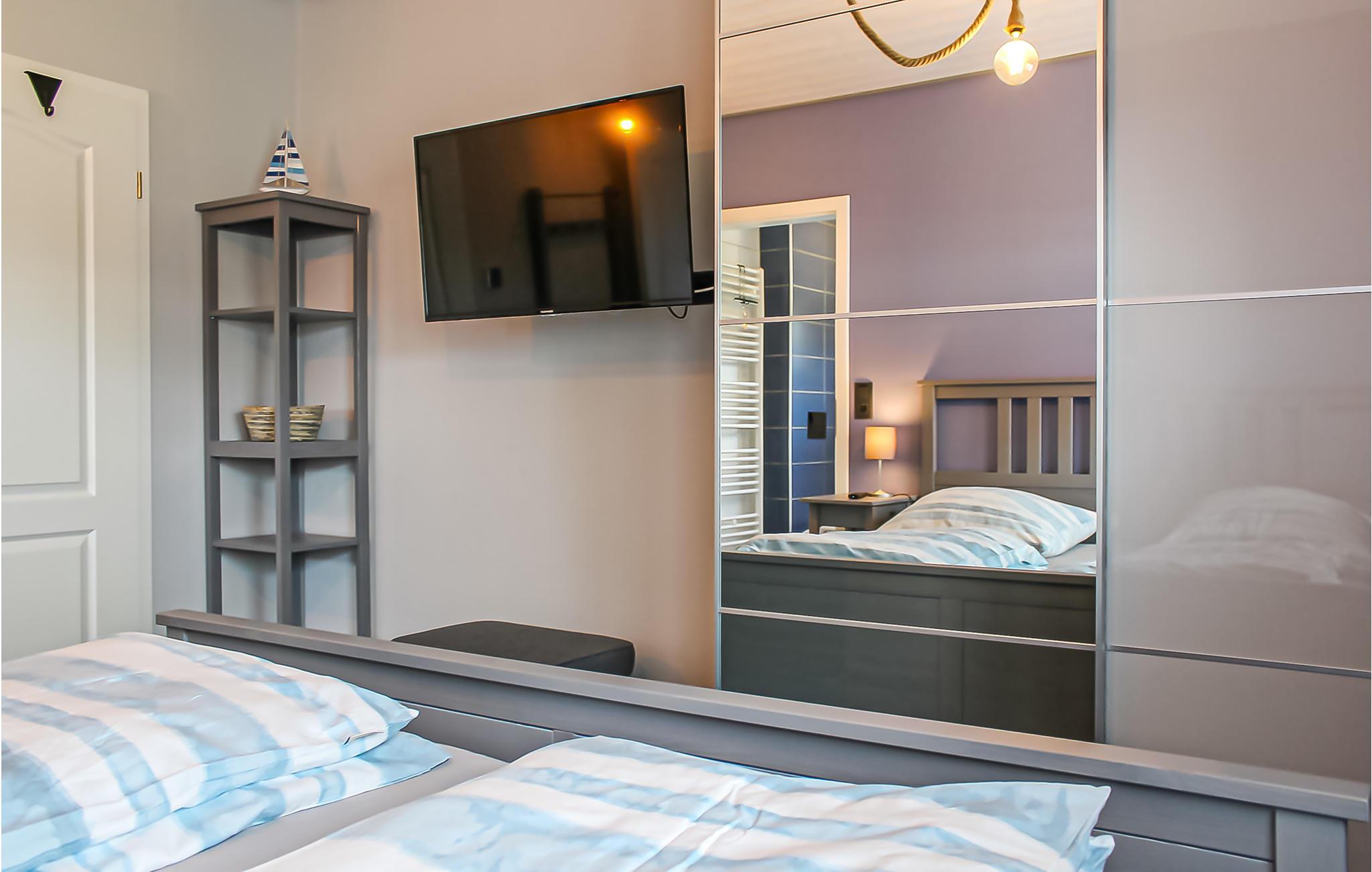 Fra det hyggelige soveværelse med eget tv kan du gå ind i det moderne badeværelse og se ud på den lille kanal, der ligger lige uden for hoveddøren. Terrassen ved siden af ??din lejlighed er perfekt til at grille eller nyde en typisk østfrisisk te i selskab med en bog.