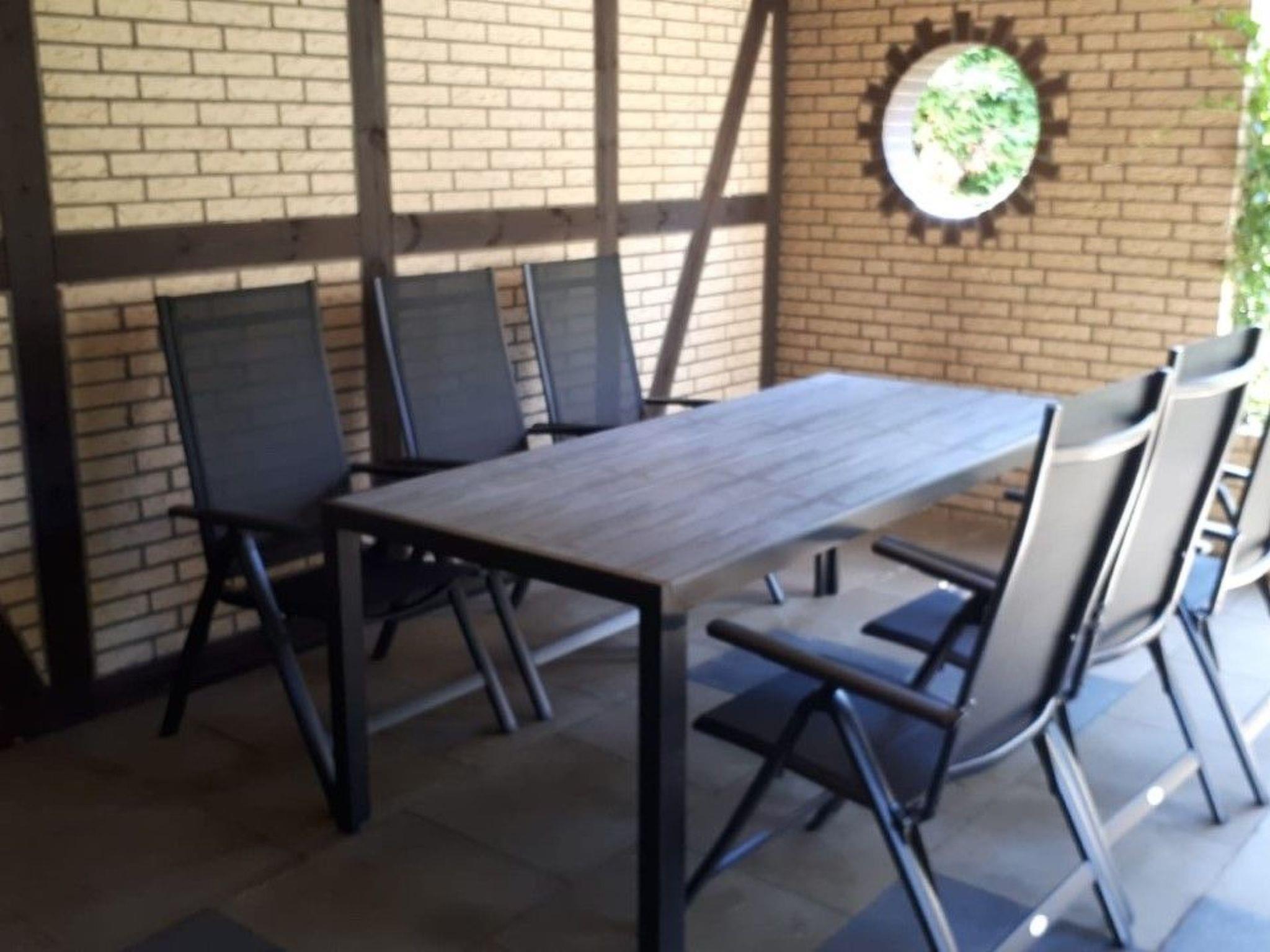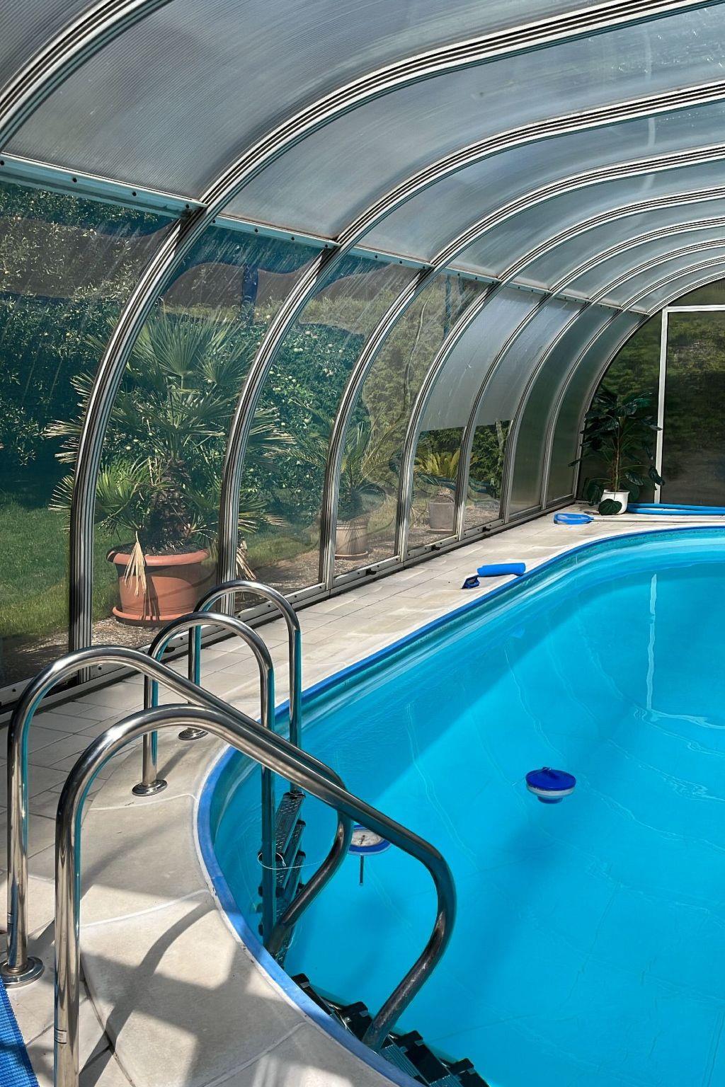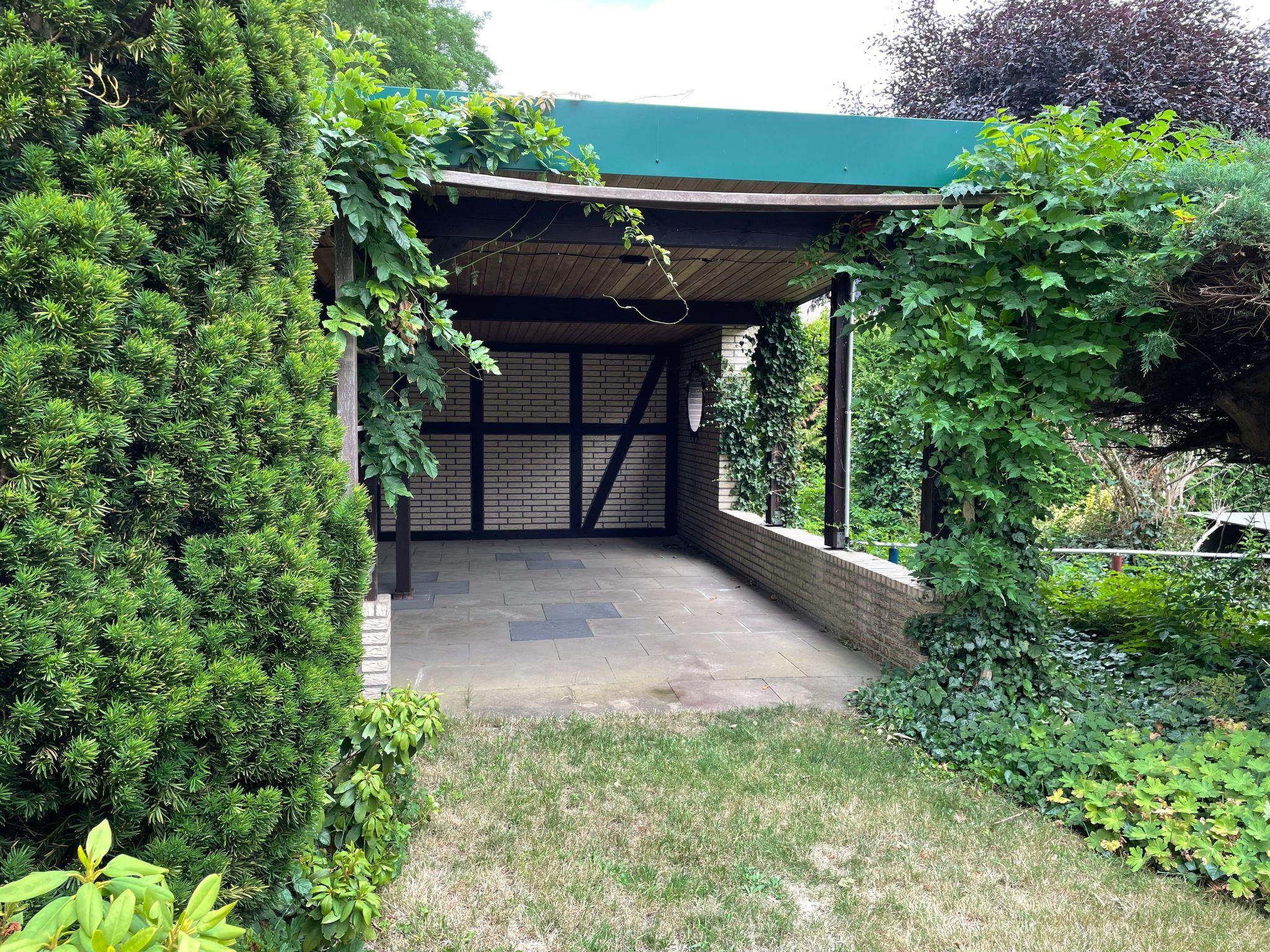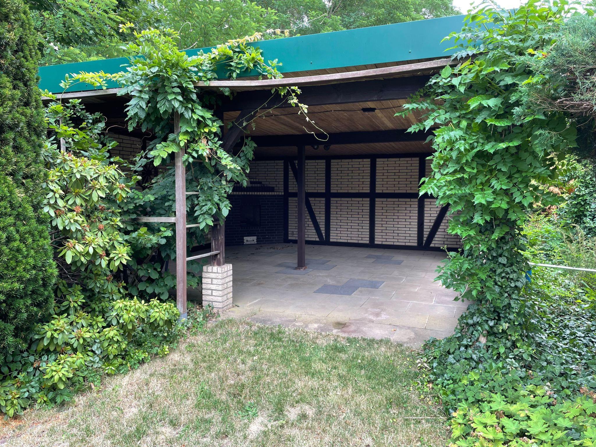 The house is located on a plot of approx. 1100 square metres with a garden that may be used, where the covered solar-heated pool and the covered barbecue and seating area are located. The pool can be used from the beginning of April to mid-September.