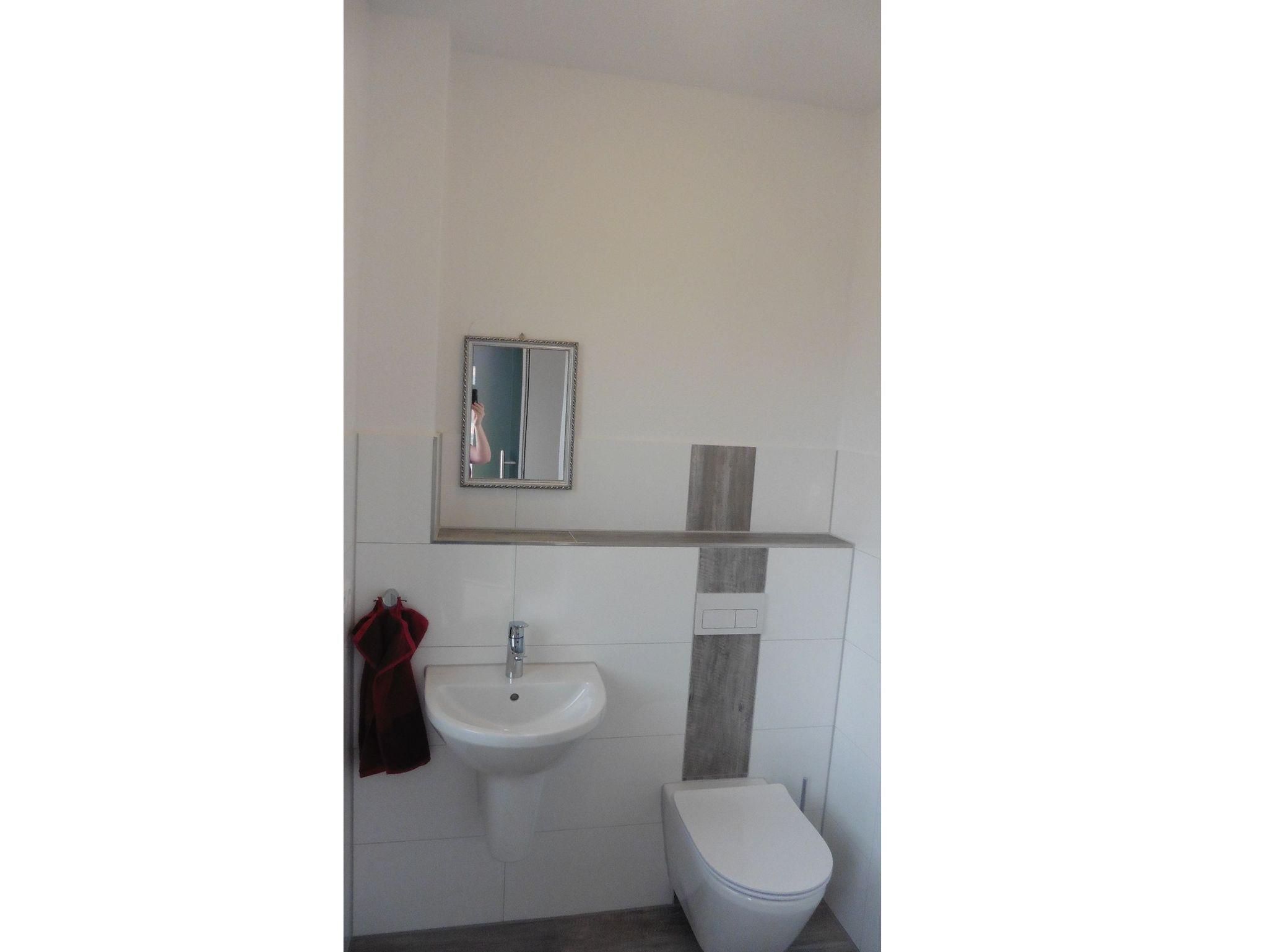 Die Haushälfte verfügt über eine Küche, einen Wohn- und Essbereich, ein WC und eine Terrasse mit eigenem Garten im Erdgeschoss und 3 Schlafzimmern sowie ein Badezimmer im Obergeschoss.