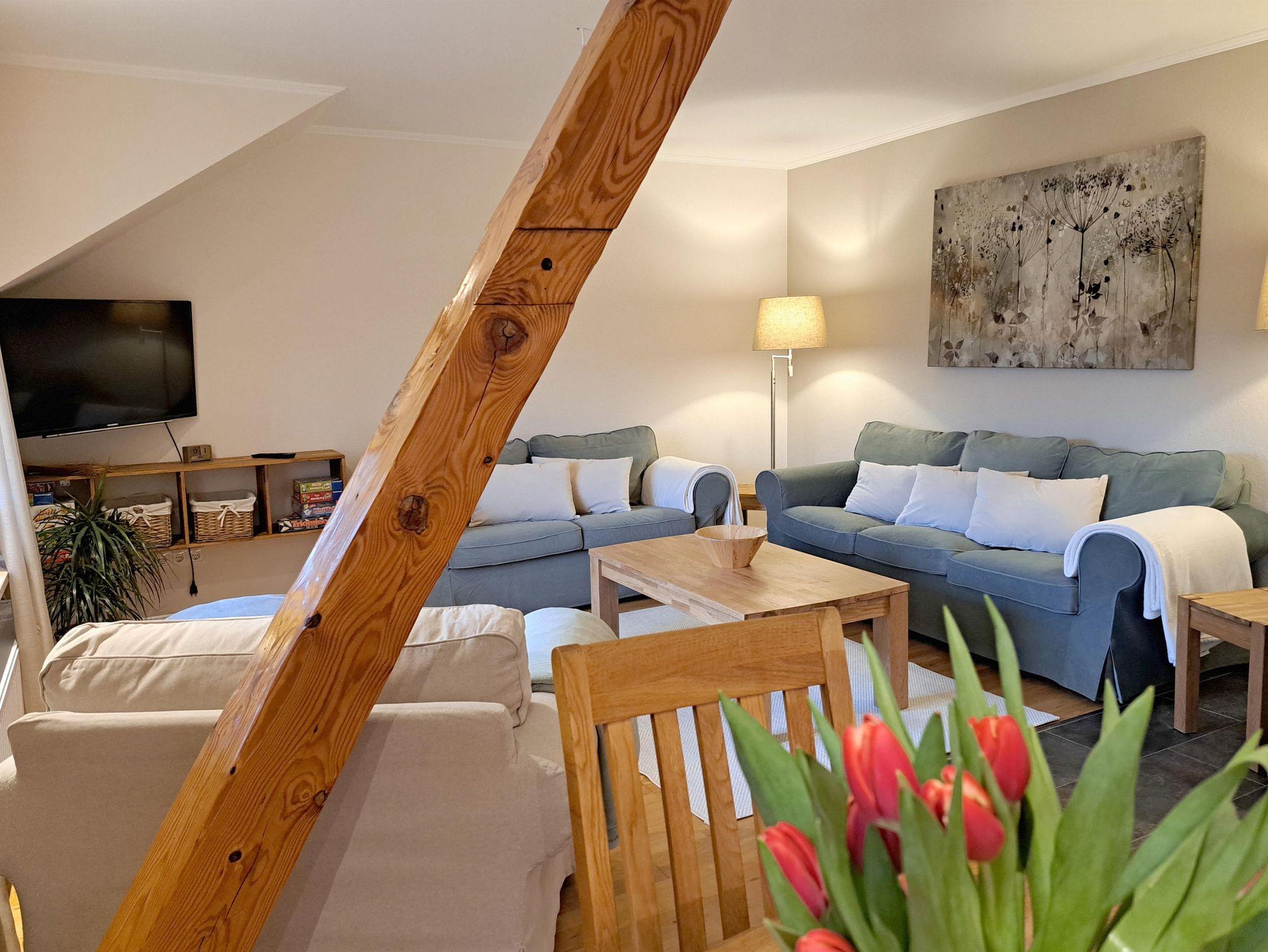 Unsere 2023 modernisierte Ferienwohnung befindet sich im Obergeschoss unserer über 170 Jahre alten historischen Hofstelle.