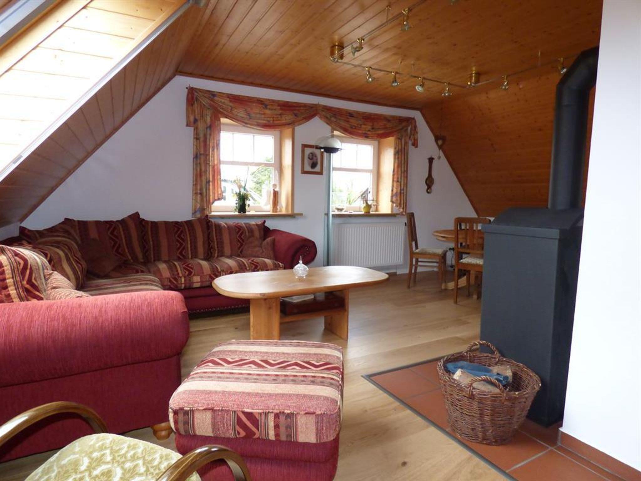 Die großzügige und helle Ferienwohnung liegt im Obergeschoß eines 2-Familienhauses mit großem Garten.