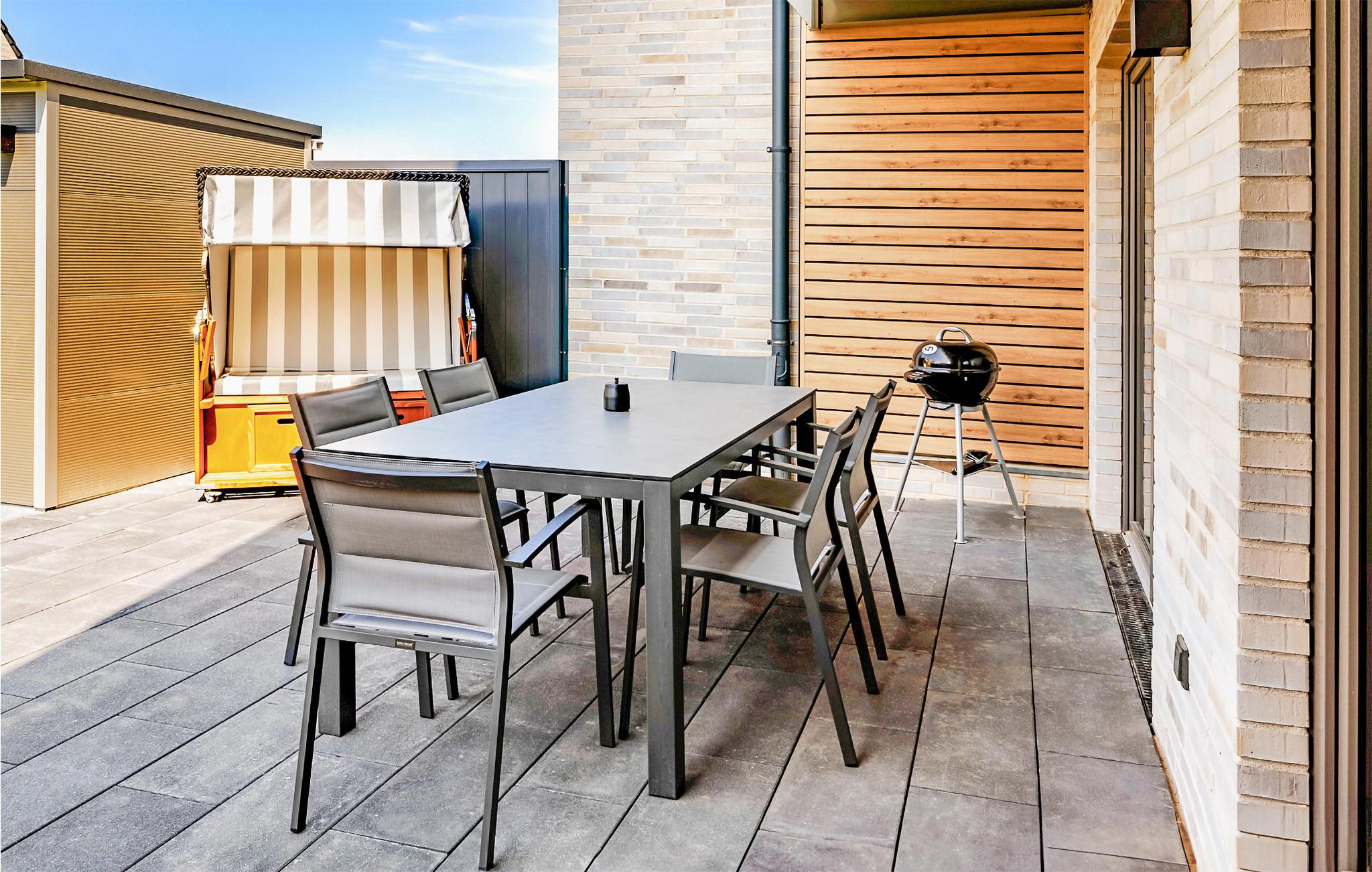 Dette skønne feriehus byder jer velkommen i Büsum ved Nordsøen. Indenfor kan I forvente et lyst og velindrettet interiør, der gør et smagfuldt indtryk. Tilbered lækre måltider til jeres kære i det store køkken og afslut dagen med en god film i sofahjørnet. I de køligere måneder af året kan I efter en dag ude i den friske luft gå i sauna eller varme jer foran pejsen.