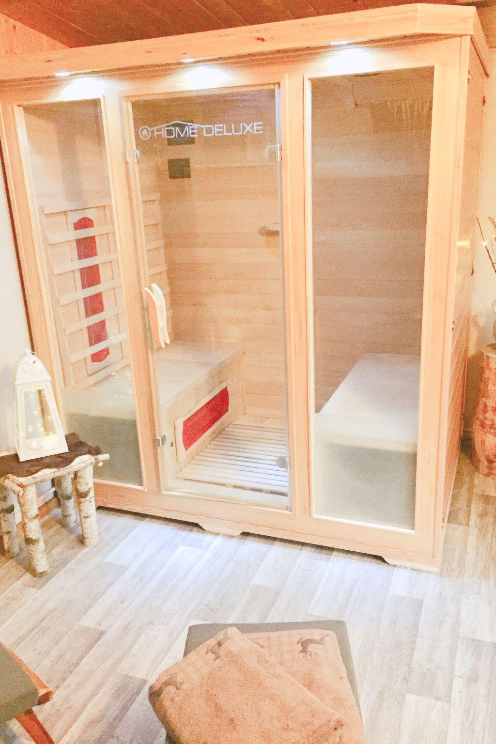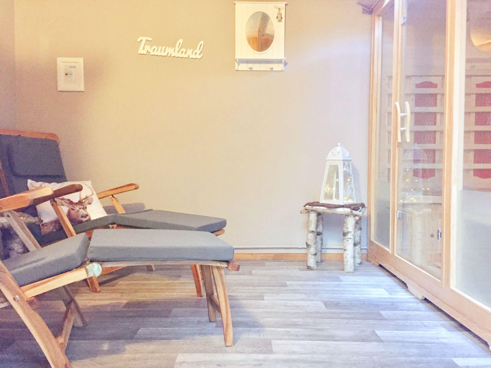 A separate sauna house with infrared cabin and relaxation area is available free of charge. When booking, please note that the upper floor can only be reached via a very steep staircase.