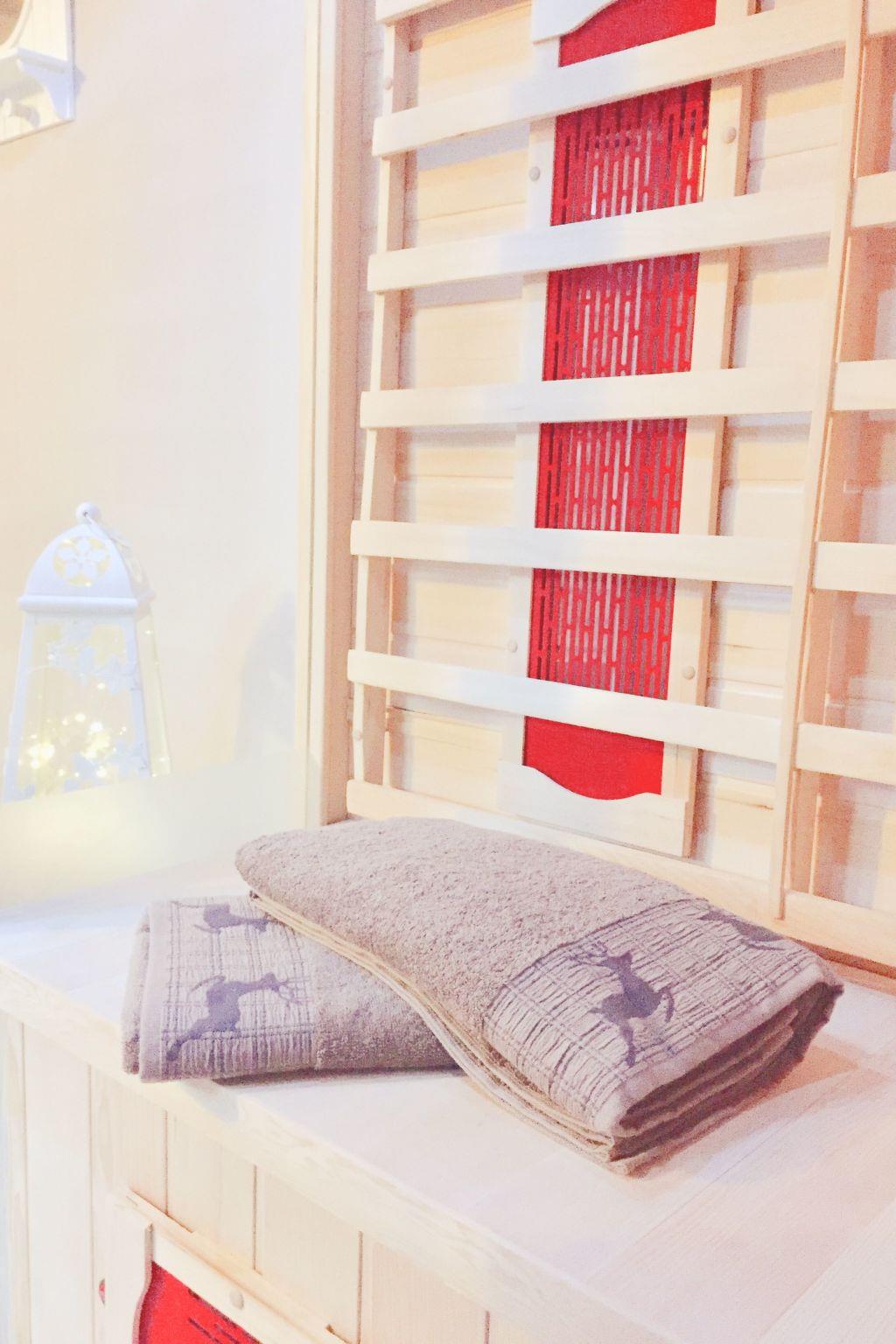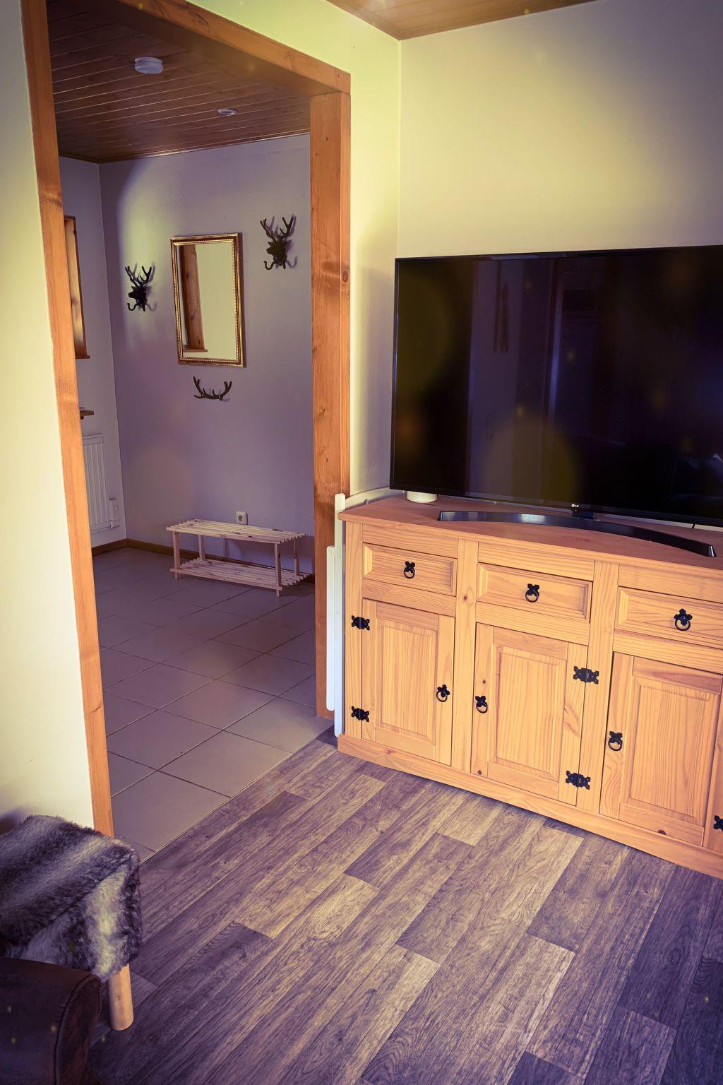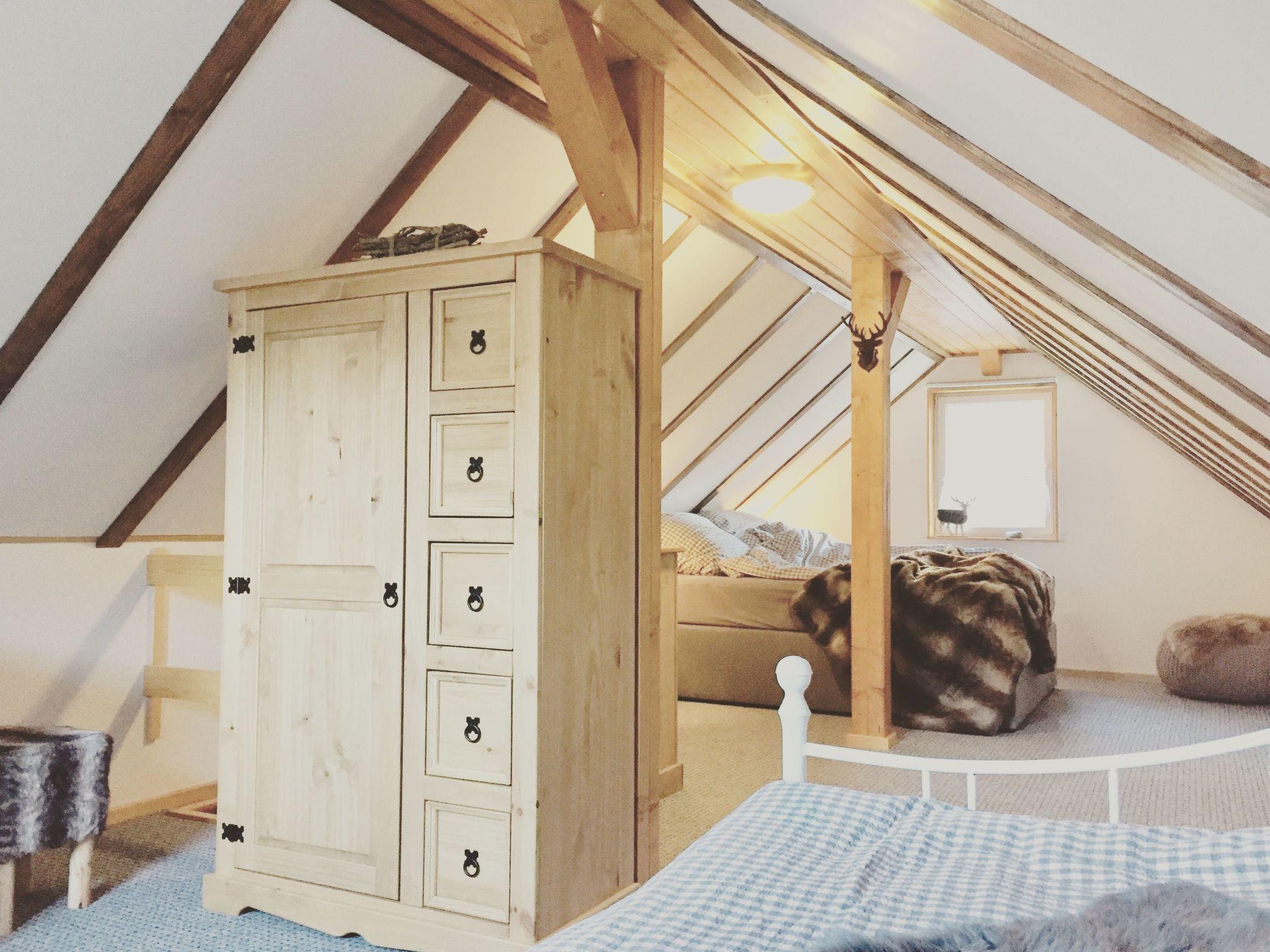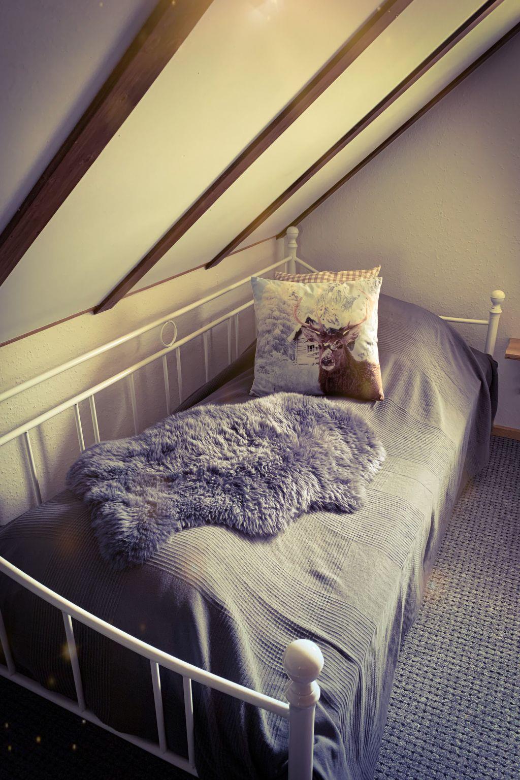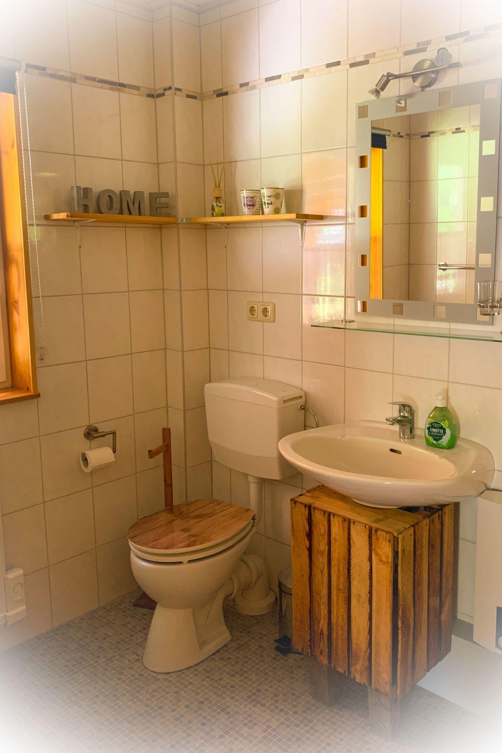 A special highlight is our infrared sauna in our own sauna house. Soothing warmth and deeply relaxing radiation are just the thing after an eventful day! Afterwards, relax in our integrated relaxation area and let your mind wander. But nothing beats a good night's sleep! On the ground floor you will find our small bedroom with a box-spring double bed, which ensures optimum sleeping comfort. Because only those who sleep well can face the next day with new energy. In bedroom no. 2, which is spread over the entire upper floor, you will also find a box-spring bed for two people as well as a single bed and a solid baby cot. If you are our guest in winter, you will certainly love our fireplace in the open-plan living area. It spreads a cosy warmth that makes you feel at home, especially on cold and uncomfortable days. The flickering flames in the fireplace and the moving flames will calm your body and mind. Relaxation is guaranteed! The open-plan living area with cosy seating and a Smart TV is integrated into our very well-equipped kitchen with a rustic bench and a wooden table where you can enjoy hearty meals together.