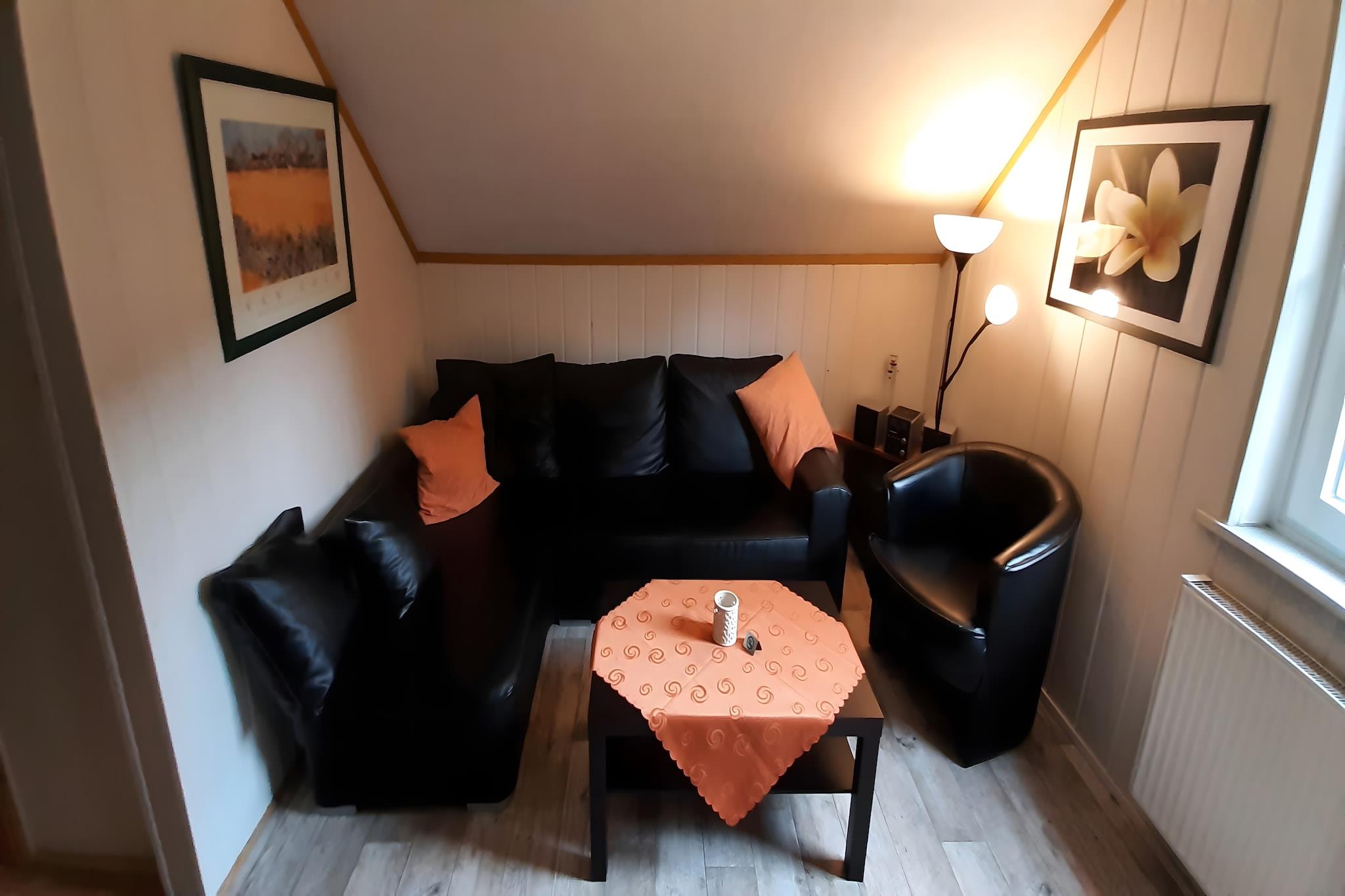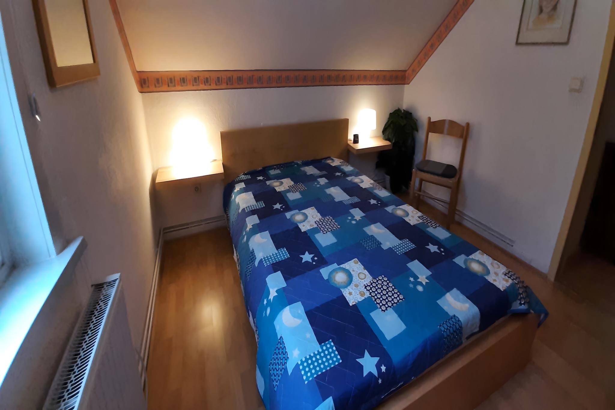 Denne kæledyrsvenlige loftslejlighed i Wildemann tilbyder en hyggelig tilflugtssted kun 100 meter fra byens centrum og skov. Ideel for par eller små familier, det er en perfekt base for at udforske Harzen-regionens kulturelle og naturlige perler. Besøg 19-Lachter-Stollen-minen for at få et indblik i minehistorien, eller beundre det kejserlige palads i Goslar og Gustav Adolfs stavkirke. For naturelskere lover klippeformationerne Feigenbaumklippe og Treppenstein en fantastisk udsigt og fredelige vandreture. Lejligheden har en lys stue med fladskærms-kabel-tv og et komfortabelt opholdsområde. Det åbne køkken er fuldt udstyret med spisebord, kaffemaskine, ovn, mikroovn, opvaskemaskine og køleskab. To soveværelser med dobbeltsenge - det ene med eget tv - tilbyder afslappende nætter, mens badeværelset har badekar med bruser. Centralvarme og privat parkering sikrer et varmt og bekvemt ophold. Omgivet af skovstier og kun 7 km fra skiløjperne er beliggenheden perfekt til udendørsaktiviteter året rundt. Spisemuligheder i nærheden omfatter det hjertelige Harzer Speisekammer, den indbydende Cafe am Bohlweg Georgiew og den italiensk-inspirerede Piccolo Mondo Hahnenklee.