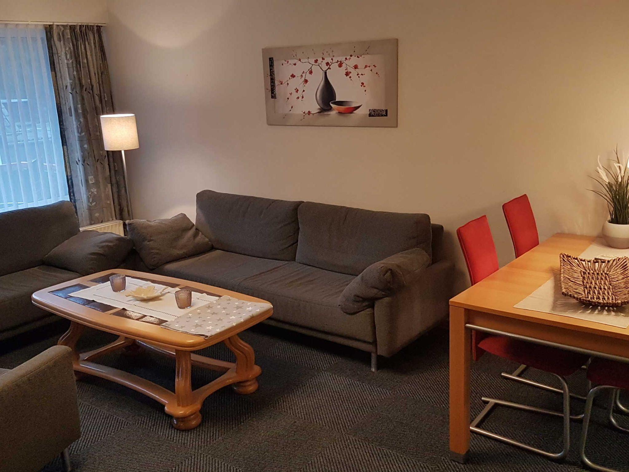 Das geräumige Wohnzimmer in der Ferienwohnung Georgenhöhe lädt ein, sich in seiner modernen, großzügigen Einrichtung wohl zu fühlen. Die Ausstattung lässt kaum einen Wunsch offen. SAT-TV, Radio, Spiele für die Familie und für Kinder. Viel Platz im Wohnraum und ein grosser Balkon bieten einen angenehmen Aufenthalt.