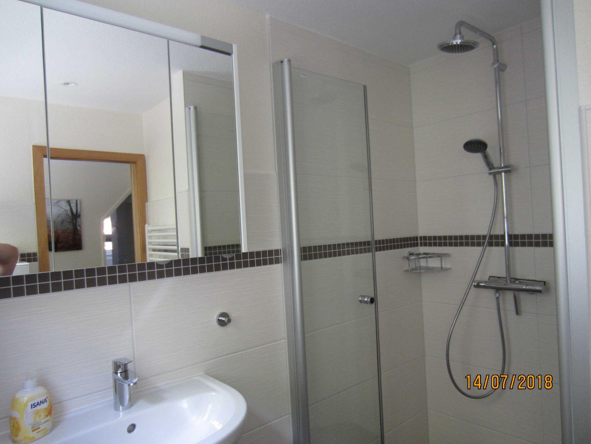 3 Duschbäder, (davon 2 komplett in 2018 neu renoviert) sowie ein neues Gäste WC zu Verfügung.