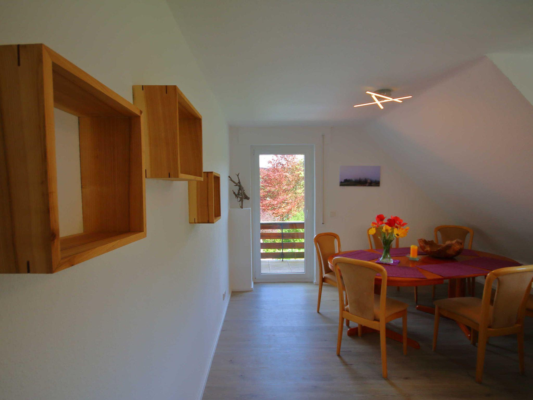 Vom offen gestalteten Ess- und Kochbereich genießt man den direkten Ausblick auf die Oberharzer Bergwiesen. Von der Wohnküche und dem Wohnzimmer kann man den nach Osten gerichteten Balkon betreten; ideal für ein gemütliches Frühstück in der Sonne mit Blick auf den blühenden Garten und die Bergwiesen.