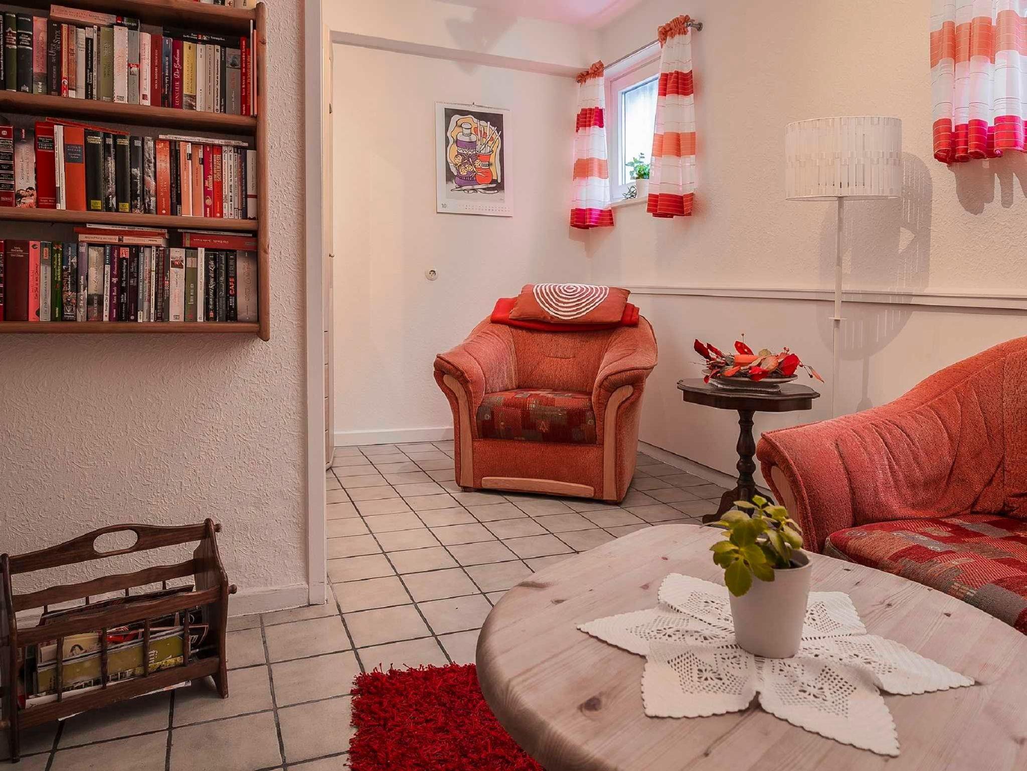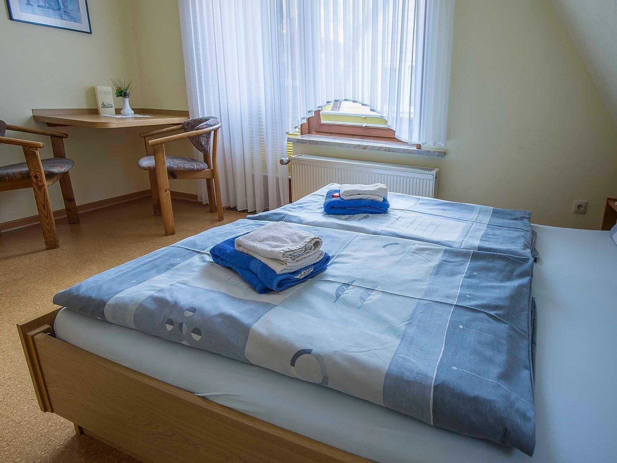 Das Doppelzimmer mit Dusche / WC und Korkfussboden liegt im Obergeschoss der Pension Brückner in Wildemann im Oberharz und ist über 15 Treppenstufen zu erreichen.den.