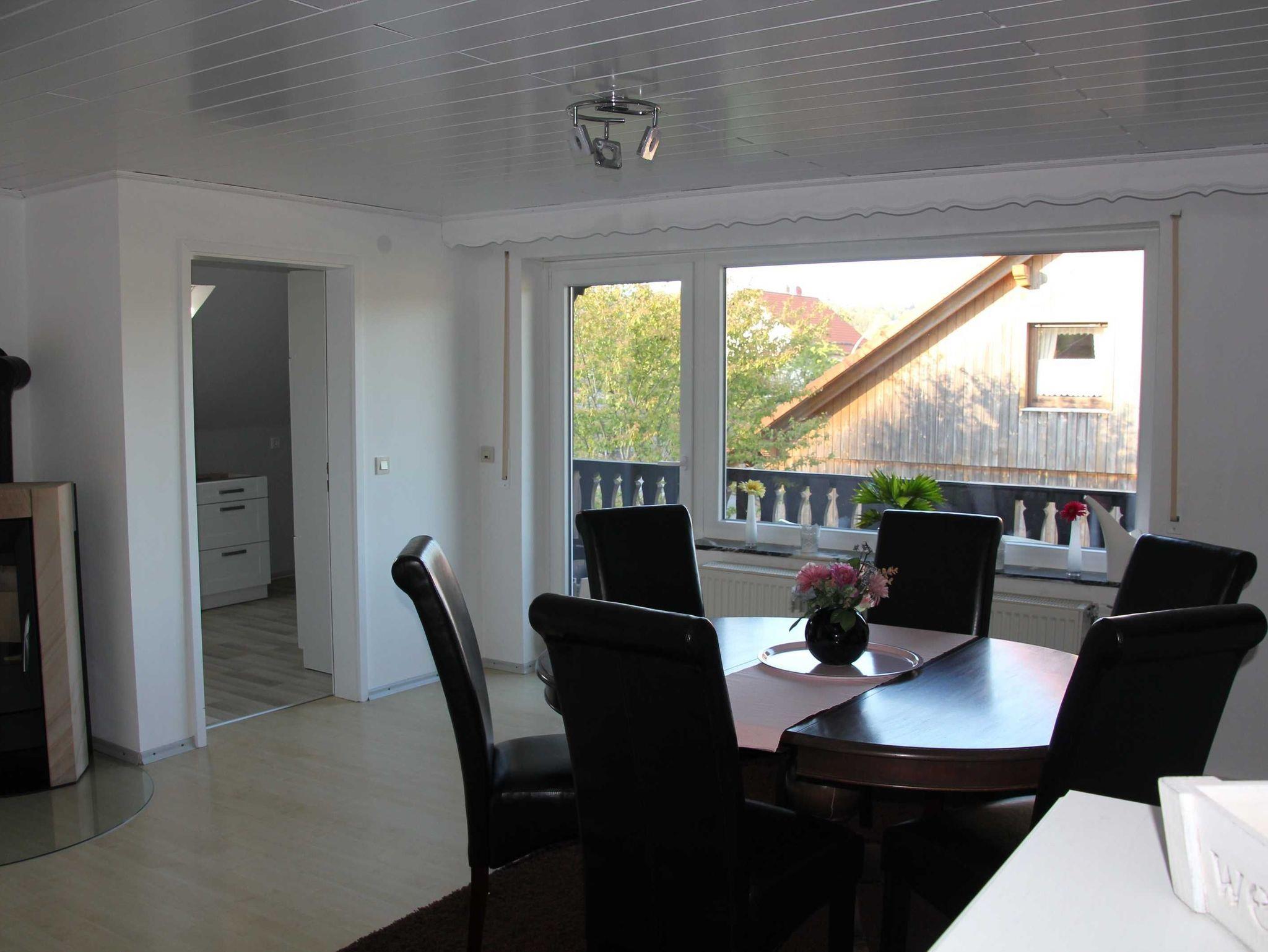 Die neu renovierte Wohnung mit ihren großzügigen 120qm, befindet sich im Obergeschoß mit Balkon und hat ausreichend Platz für 4-6 Personen. Sie bietet eine neu eingerichtete Küche und einem großzügigen Wohnzimmer. Zwei große Schlafzimmer mit 180cm Boxspringbetten sorgen für erholsamen Schlaf. Ein 140cm Futonbett im Wohnzimmer für 5. und 6. Person. Großes Bad mit Doppelwaschbecken und einer begehbaren geräumigen Dusche, die Platz für Zwei bietet. Der moderne Kaminofen kümmert sich um die Gemütlichkeit im Winter. Einkaufsmöglichkeiten mit Bäcker sind im Ort vorhanden.
