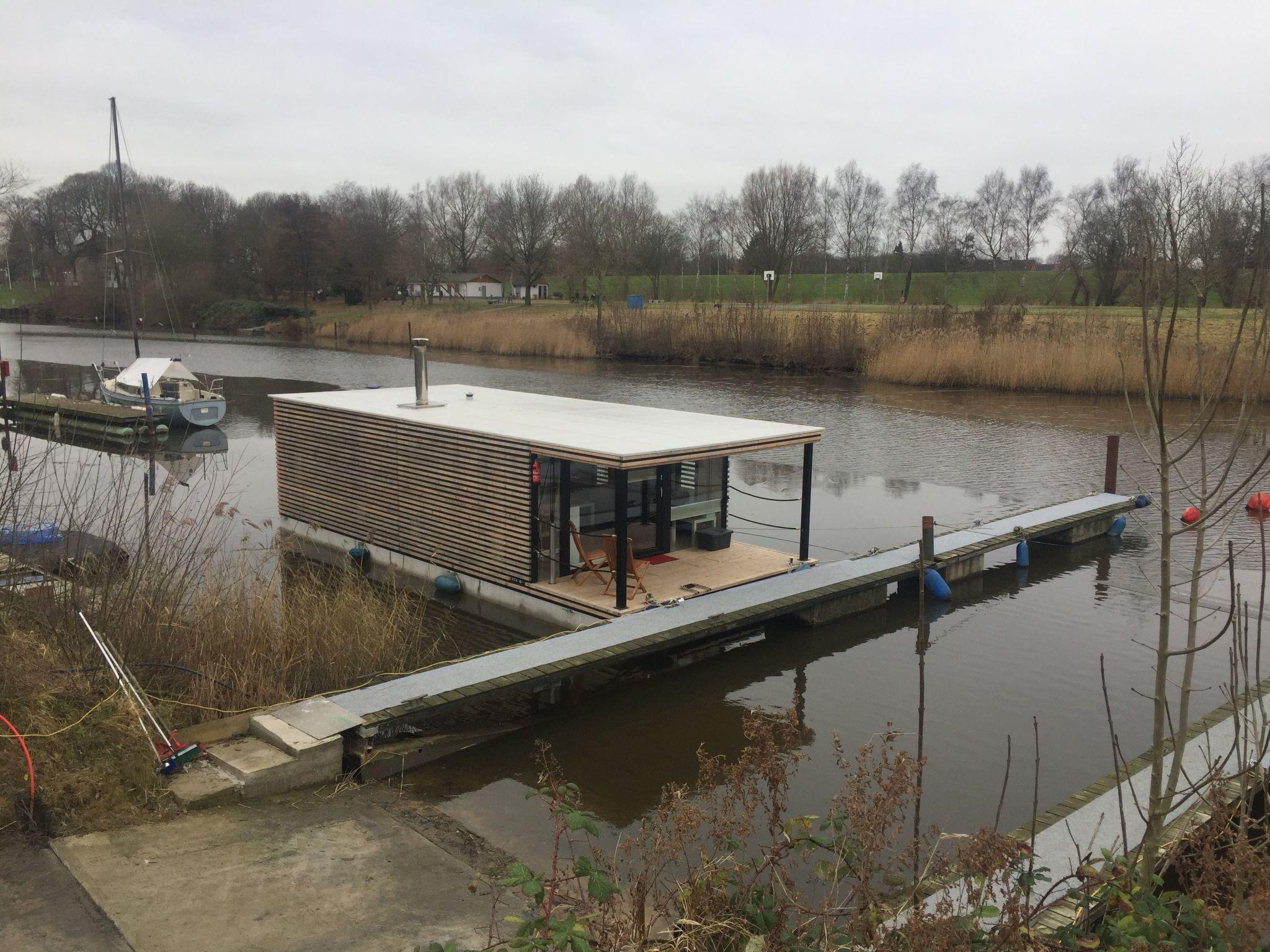 The HT 4 houseboat is a stationary, floating house with a view of the river Maade. It is quietly situated on the water in the idyllic Rüstersiel, a district of Wilhelmshaven.