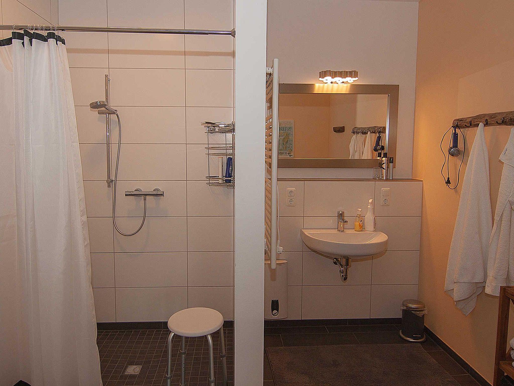 Das Duschbad ist sehr geräumig. Sie ist bedingt barrierefrei und für maximal 4 Personen ausgelegt.