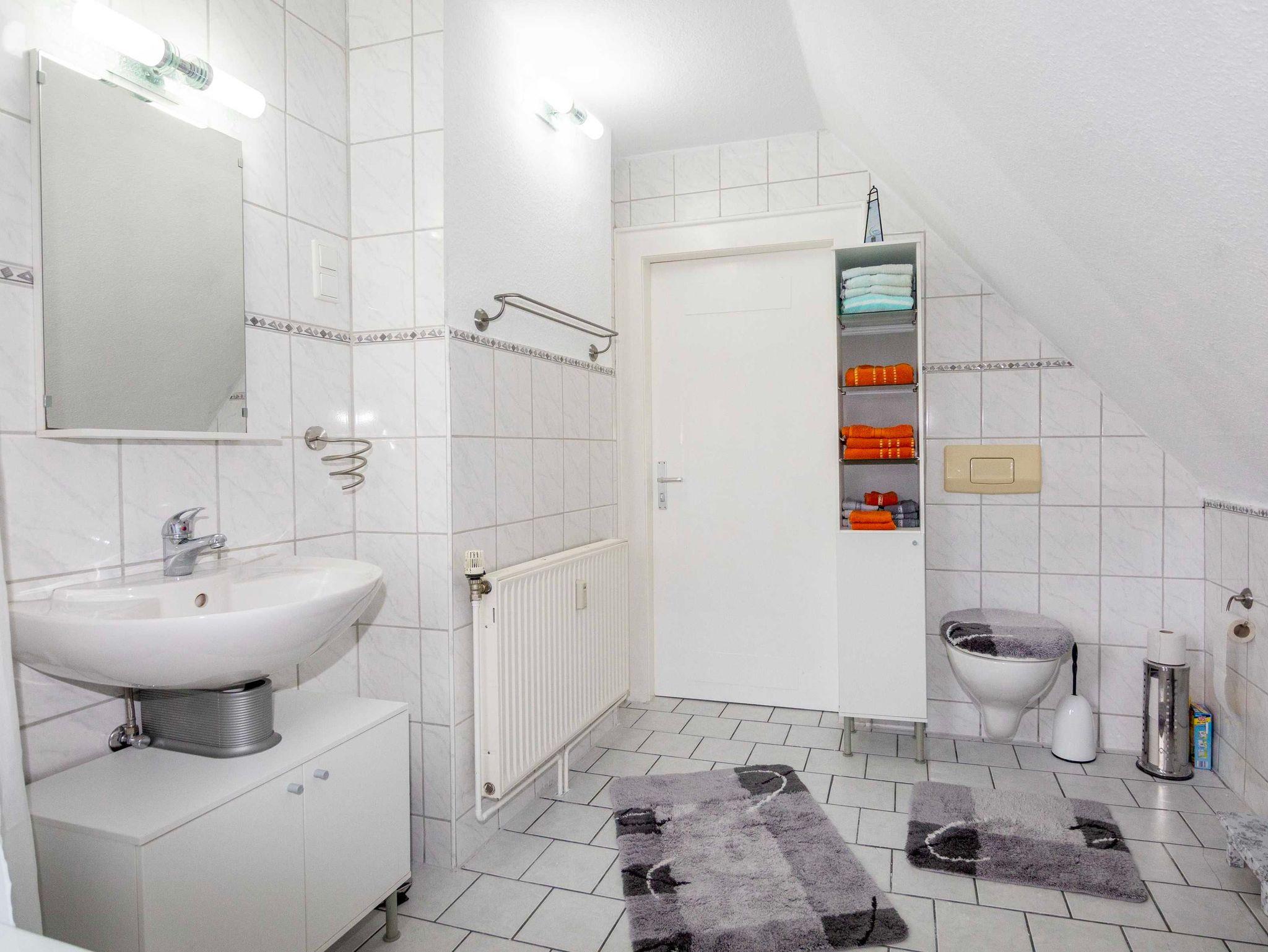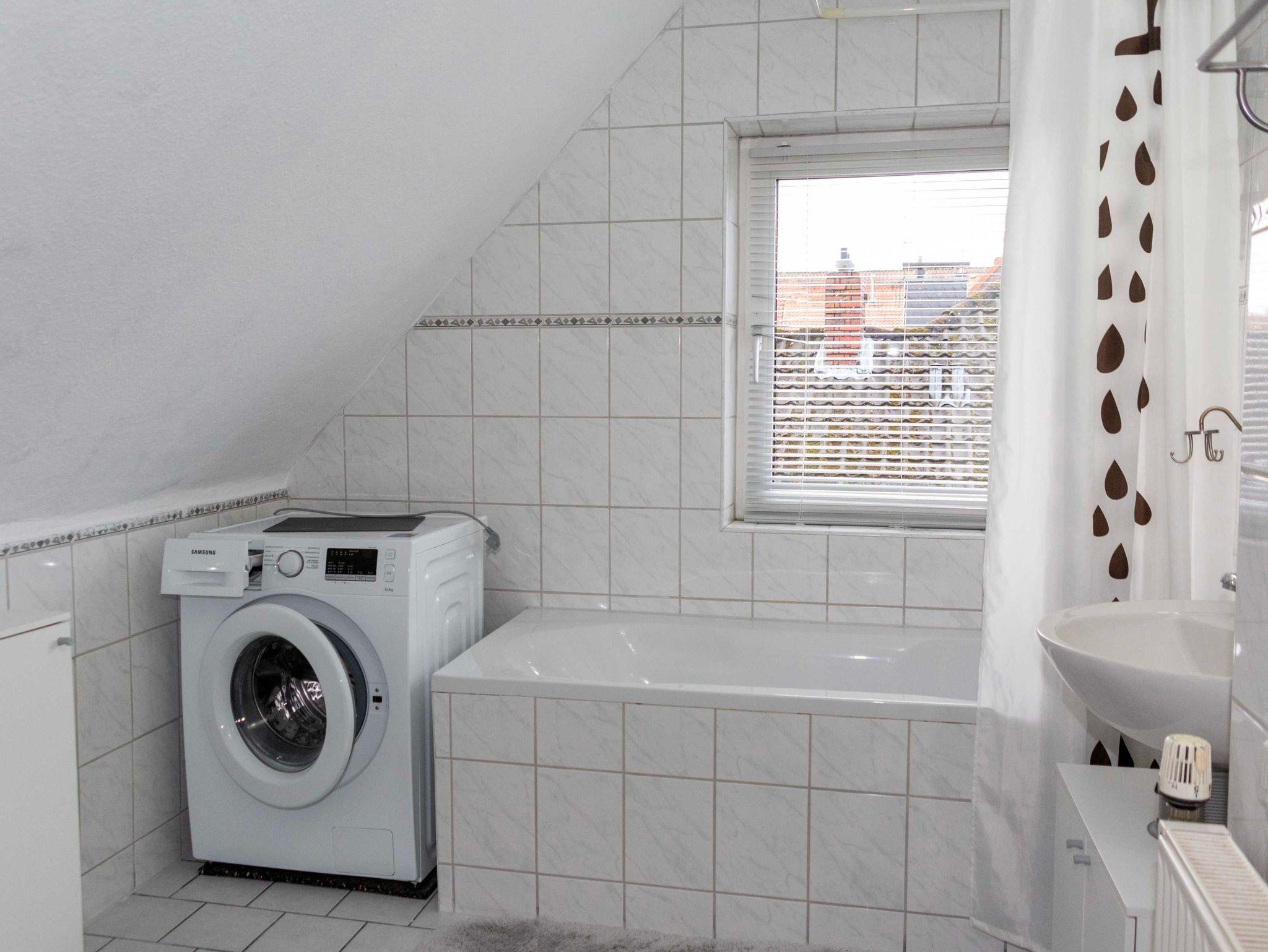 Das Tageslichtbad ist geräumig und mit einer Badewanne (mit Duschoption), Waschbecken, Toilette, Waschmaschine und Fön ausgestattet. Ein Trockner im Keller kann nach Rücksprache gerne mitgenutzt werden.