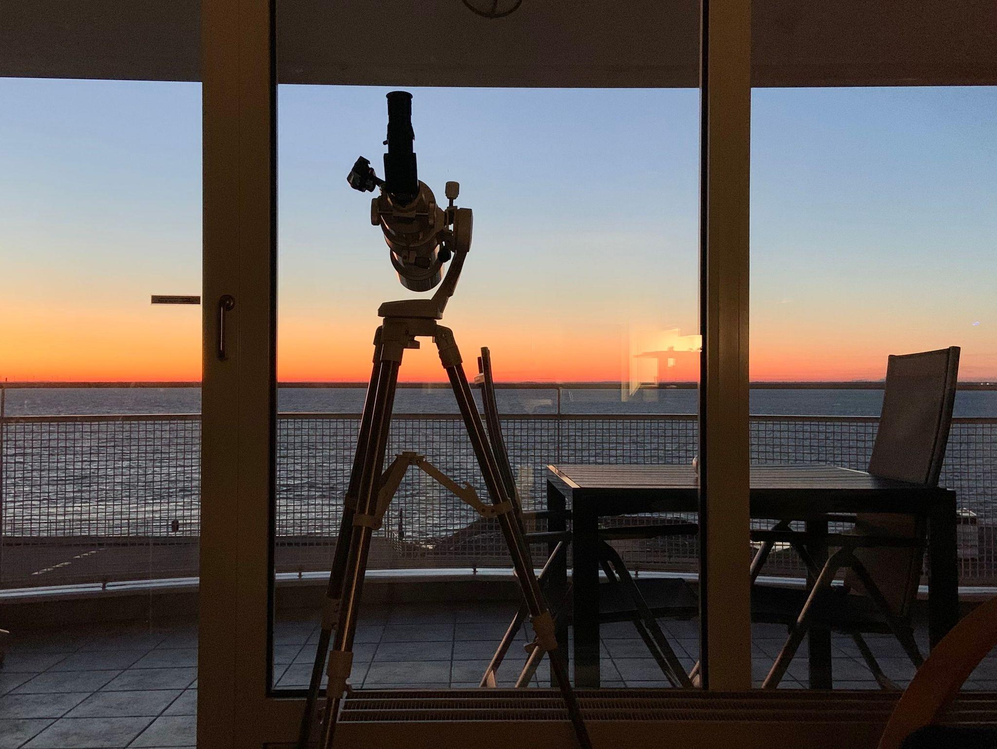 Zur Beobachtung der Sterne und dem Mond über dem nächtlichen Jadebusen steht Ihnen ein Teleskop zur Verfügung.
