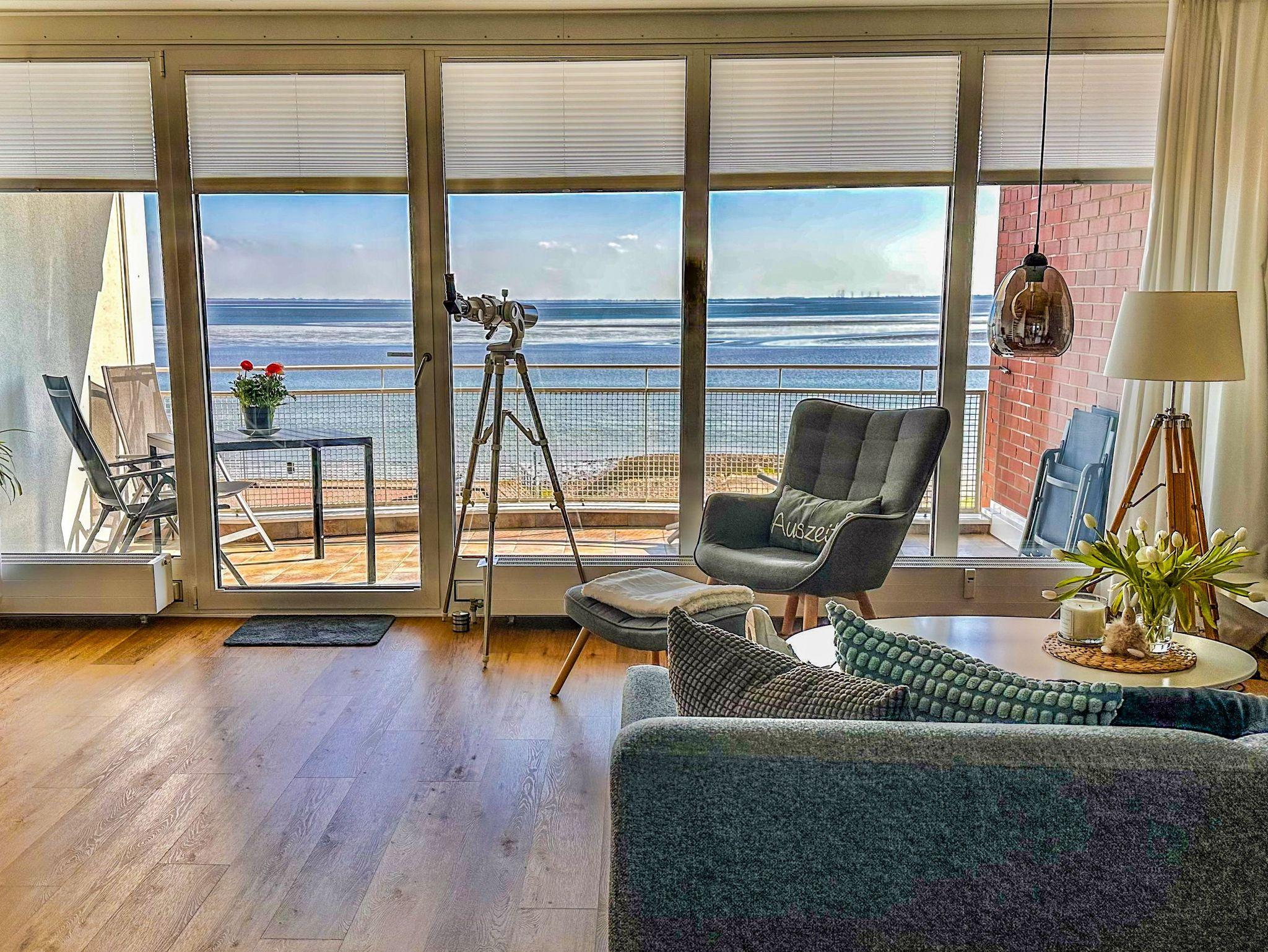 Genießen Sie vom Wohnzimmer aus den weiten Blick über den Jadebusen.