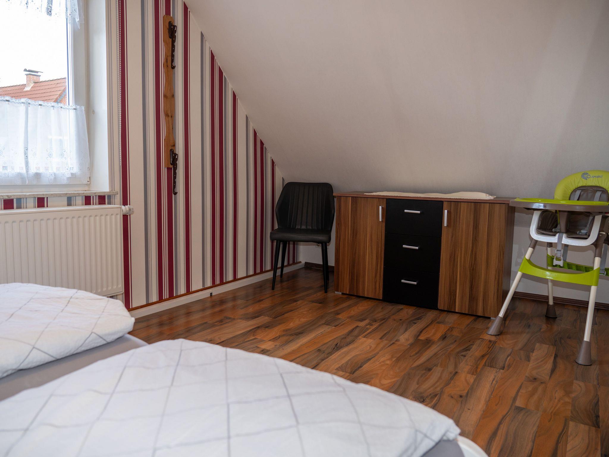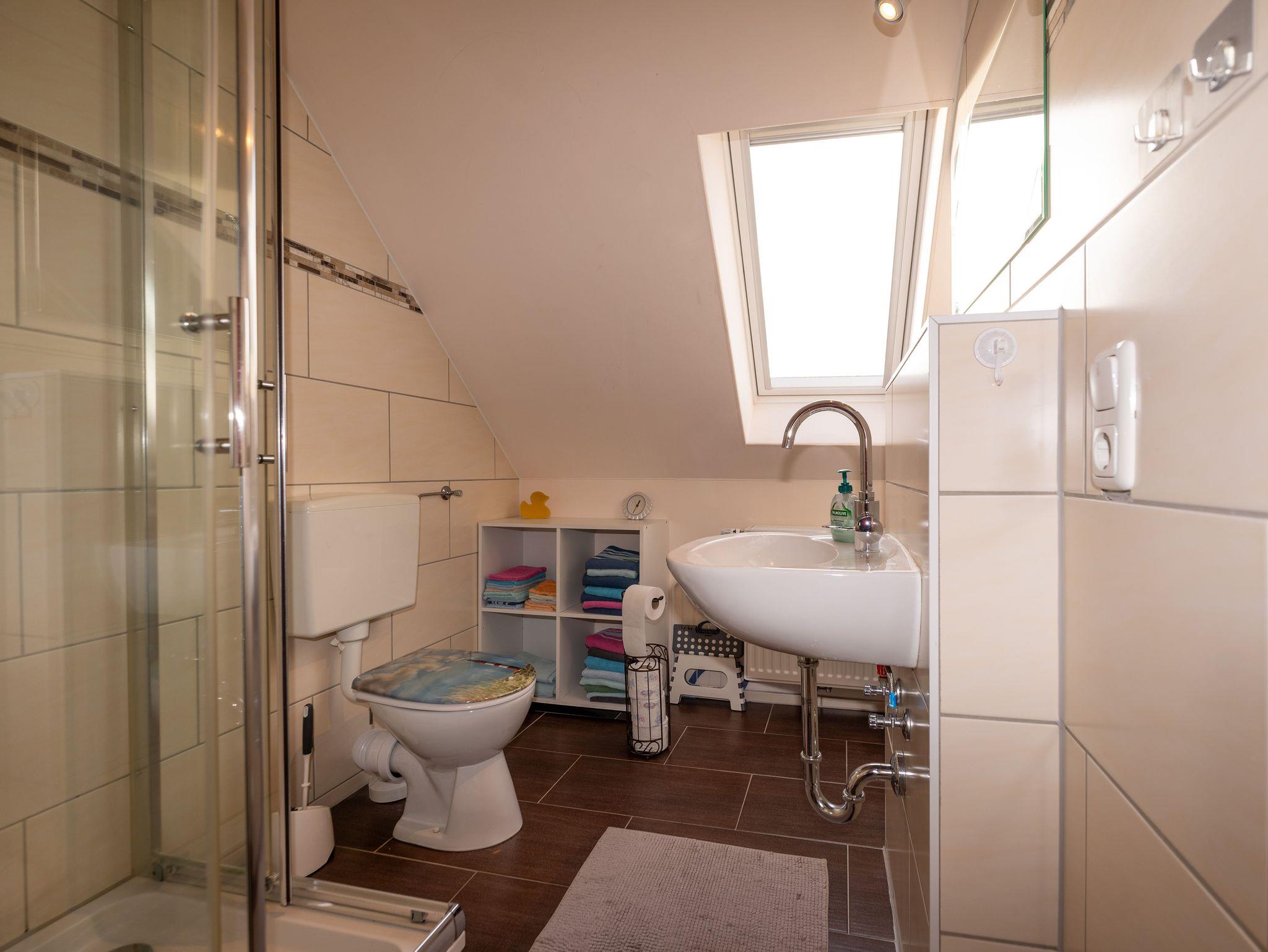 In der Wohnküche befindet sich eine voll ausgestattete Küchenzeile mit Kaffeemaschine, Wasserkocher, Toaster, Geschirrspüler, Backofen mit vier Ceranfeldplatten, Mikrowelle und Kühlschrank mit Gefrierfach. Eine gemütliche Essecke rundet diesen Bereich ab. Der Wohnbereich lädt mit einem Sofa und seinen Cocktailsesseln sowie einem 32 Zoll Flachbild Fernseher zum Relaxen ein. Ein Schlafzimmer ist mit einem Doppelbett (1,60 m x 2,00 m) ausgestattet. Das ander schlafzimmer (Kinderzimmer) ist mit 2 Einzelbetten (0,90 m x 2,00 m) versehen. Des Weiteren steht für ein Kleinkind, ein Kinder-Reisebett zur Verfügung. Das Bad ist mit einer Dusche, einer Toilette sowie einem Waschbecken ausgestattet.