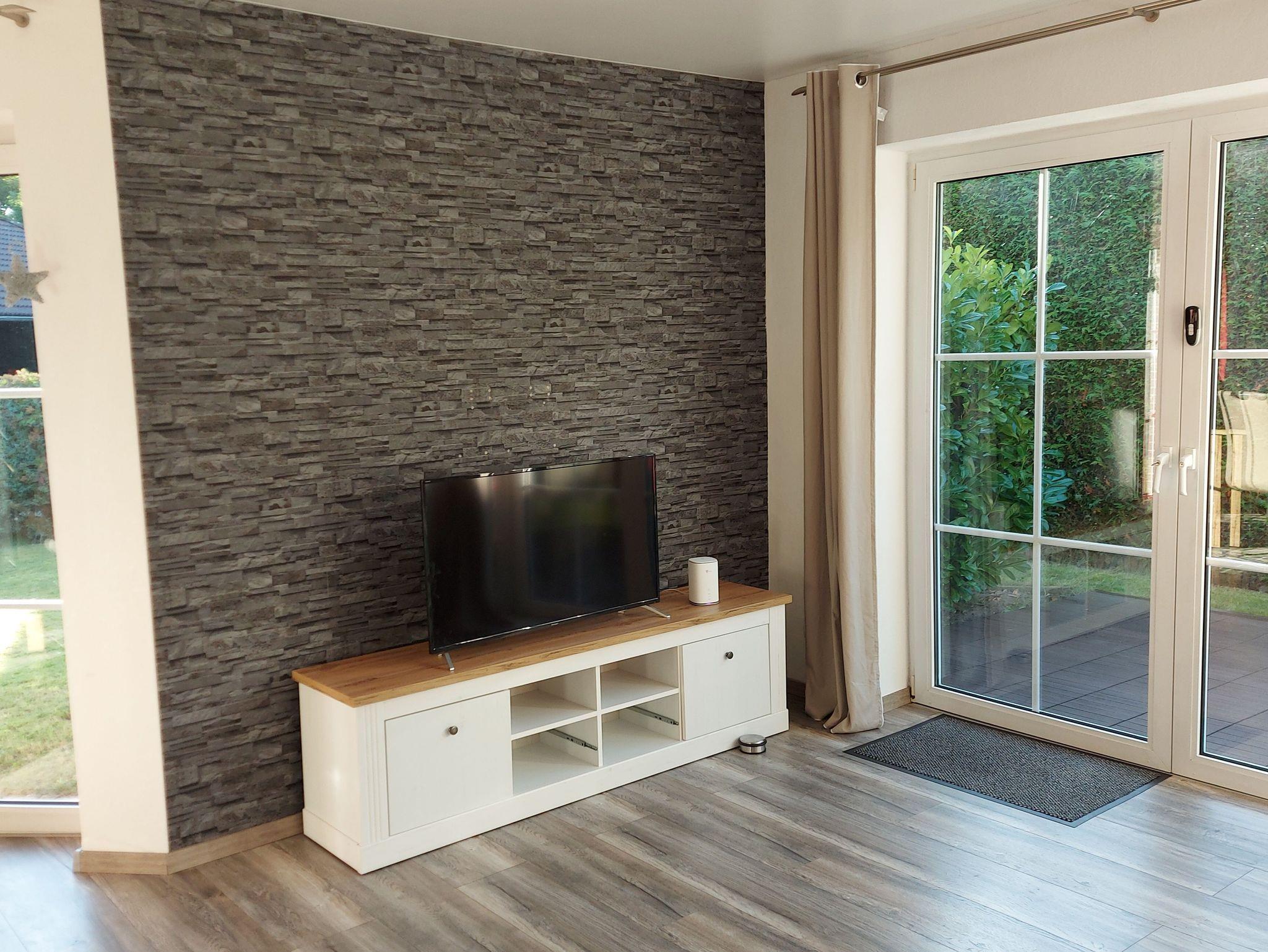 100 qm verteilt auf zwei Ebenen mit einer großzügigen Terrasse, die mit einer Markise überdacht werden kann, bietet dieses Friesenhaus viel Platz für die ganze Familie. Im Obergeschoss befinden sich zwei Schlafzimmer und ein modernes Badezimmer. Im Erdgeschoß ist das Wohnzimmer mit Essbereich und einer offenen Küche untergebracht. Von hier aus gelangen Sie auf die Terrasse. Im Erdgeschoss sind die Gästetoilette sowie ein Hauswirtschaftsraum zu finden. Die vollausgestattete Küche mit Toaster, Mikrowelle, Kühl-und Gefrierkombi, Geschirrspüler, Kapsel-Kaffeemaschine oder alternativ Kaffeefilter mit Kanne sowie einem Ceranfeldherd mit Backofen, lädt zum Zaubern von kulinarischen Genüssen ein. Mitgebrachte Fahrräder können im Abstellraum neben dem Carport eingeschlossen werden. Das Auto hat einen eigenen, überdachten Stellplatz (Carport) am Haus.