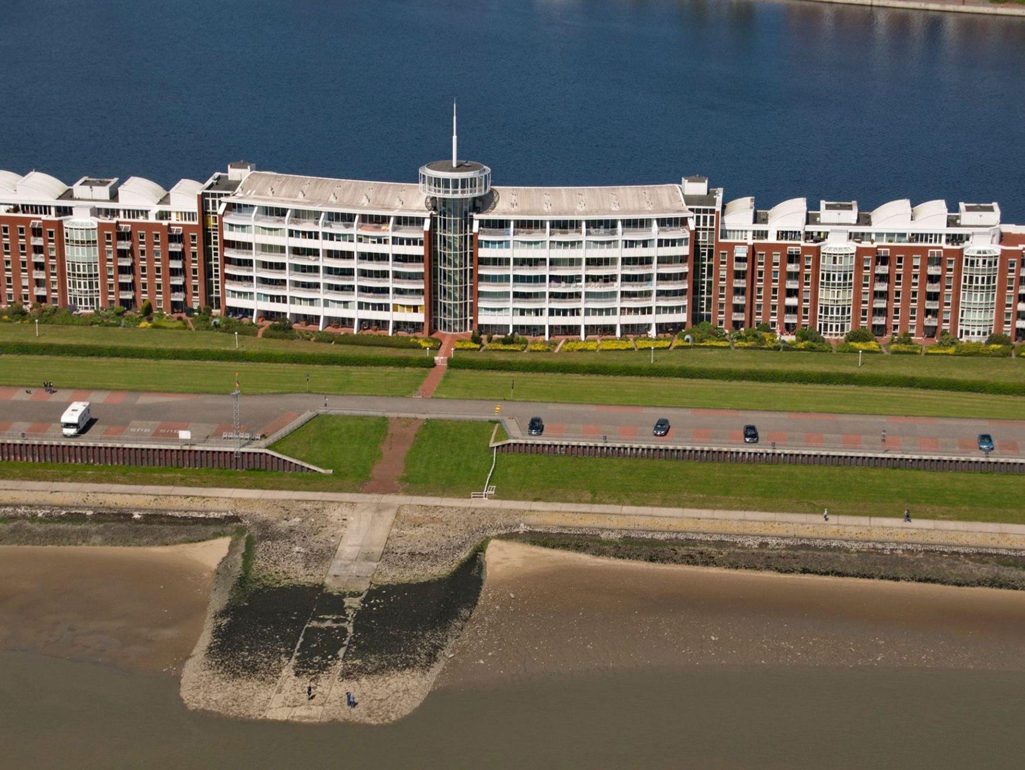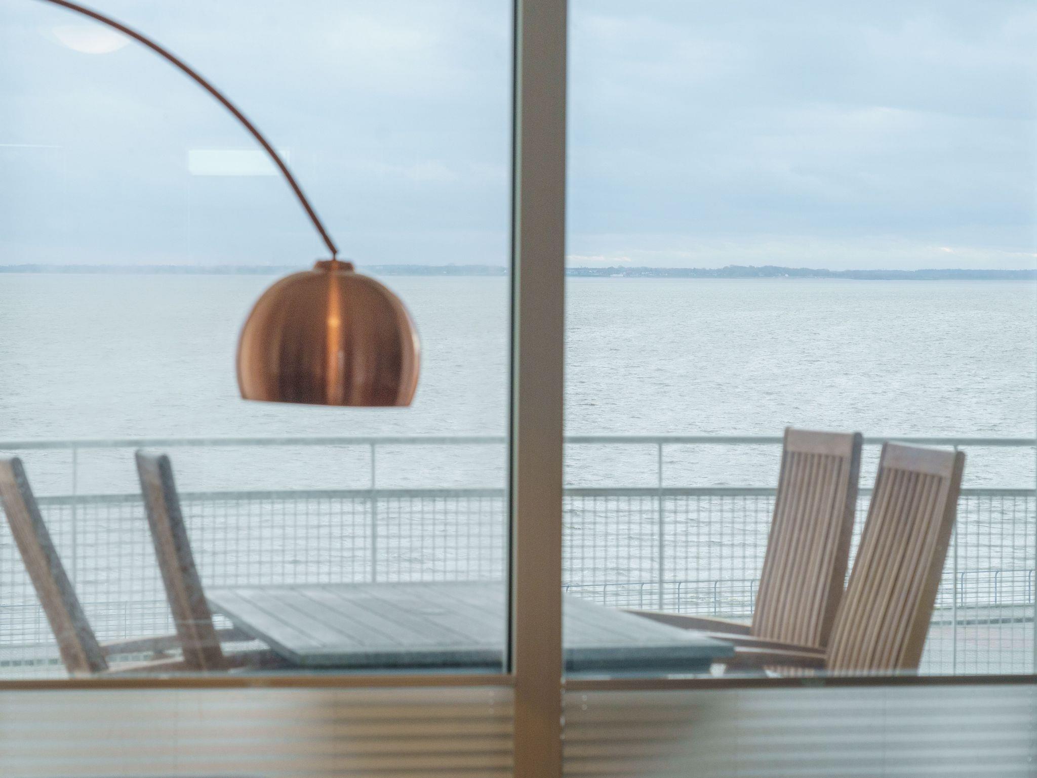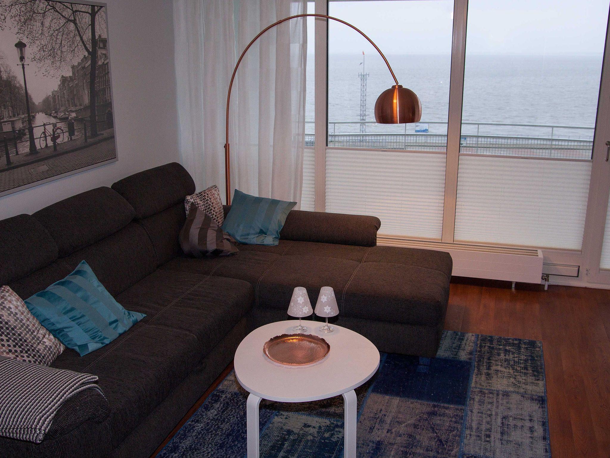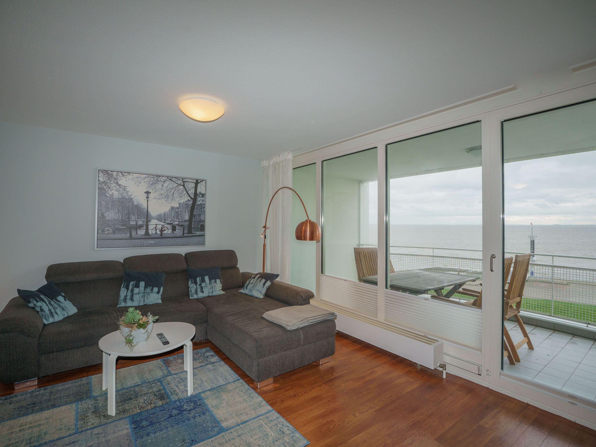 Direkt am Deich gelegen, genießen Sie vom Wohnzimmer aus den weiten Blick über´ die Nordsee. Vom Küchenfenster aus schweift der Blick über den großen Hafen von Wilhelmshaven - Wasser, wohin man sieht.