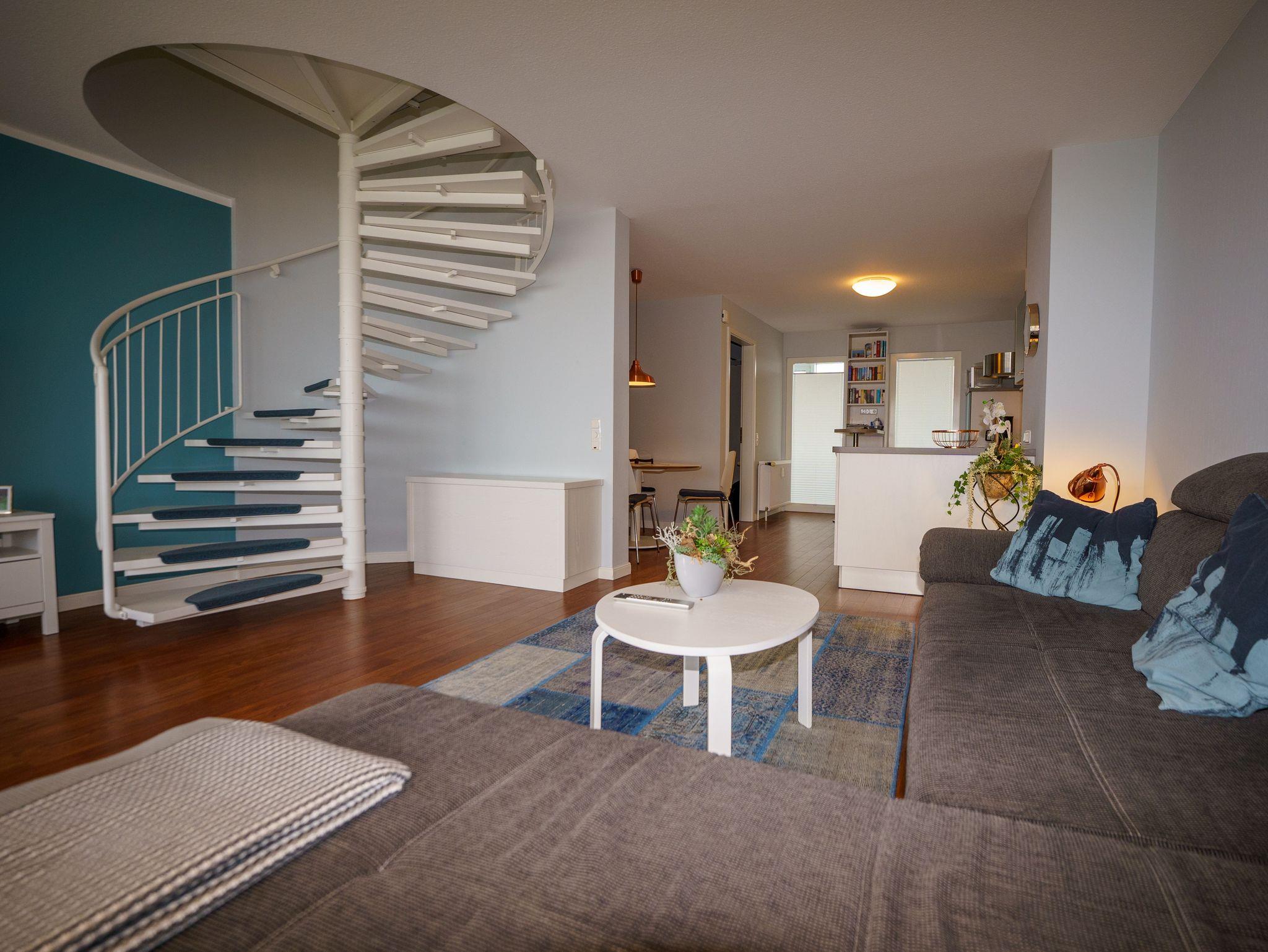 Entspannen Sie sich in dieser gemütlich eingerichteten Maisonette-Ferienwohnung, die im Helgolandhaus im fünften Stock zu finden ist.