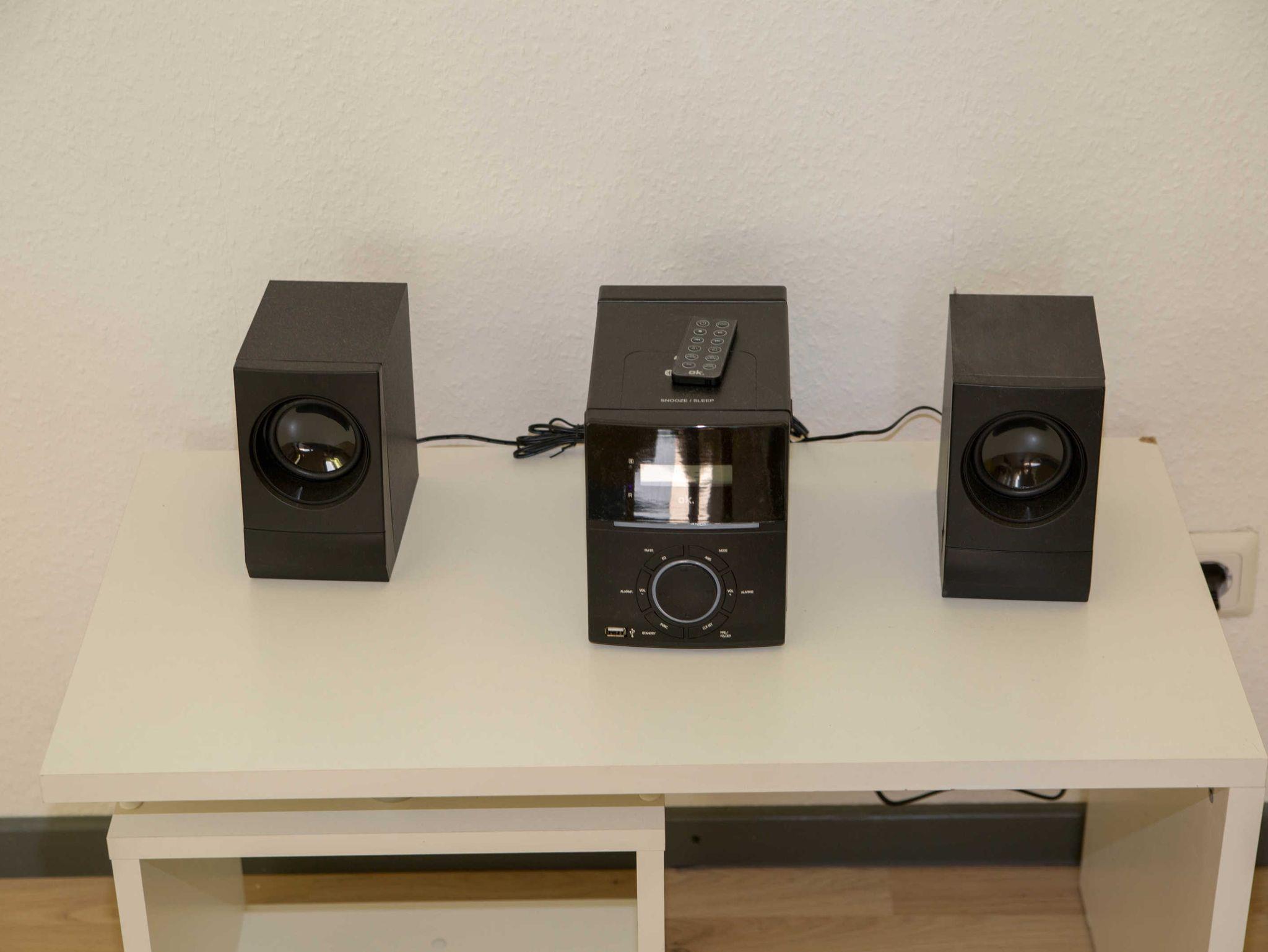 Das helle Wohnzimmer hat eine Schlafcouch mit einer Liegefläche von 1,40 m x 2,00 m, auf der zwei Personen übernachten können. Ein Fernseher mit Satellitenempfang und eine Musikanlage sind vorhanden.