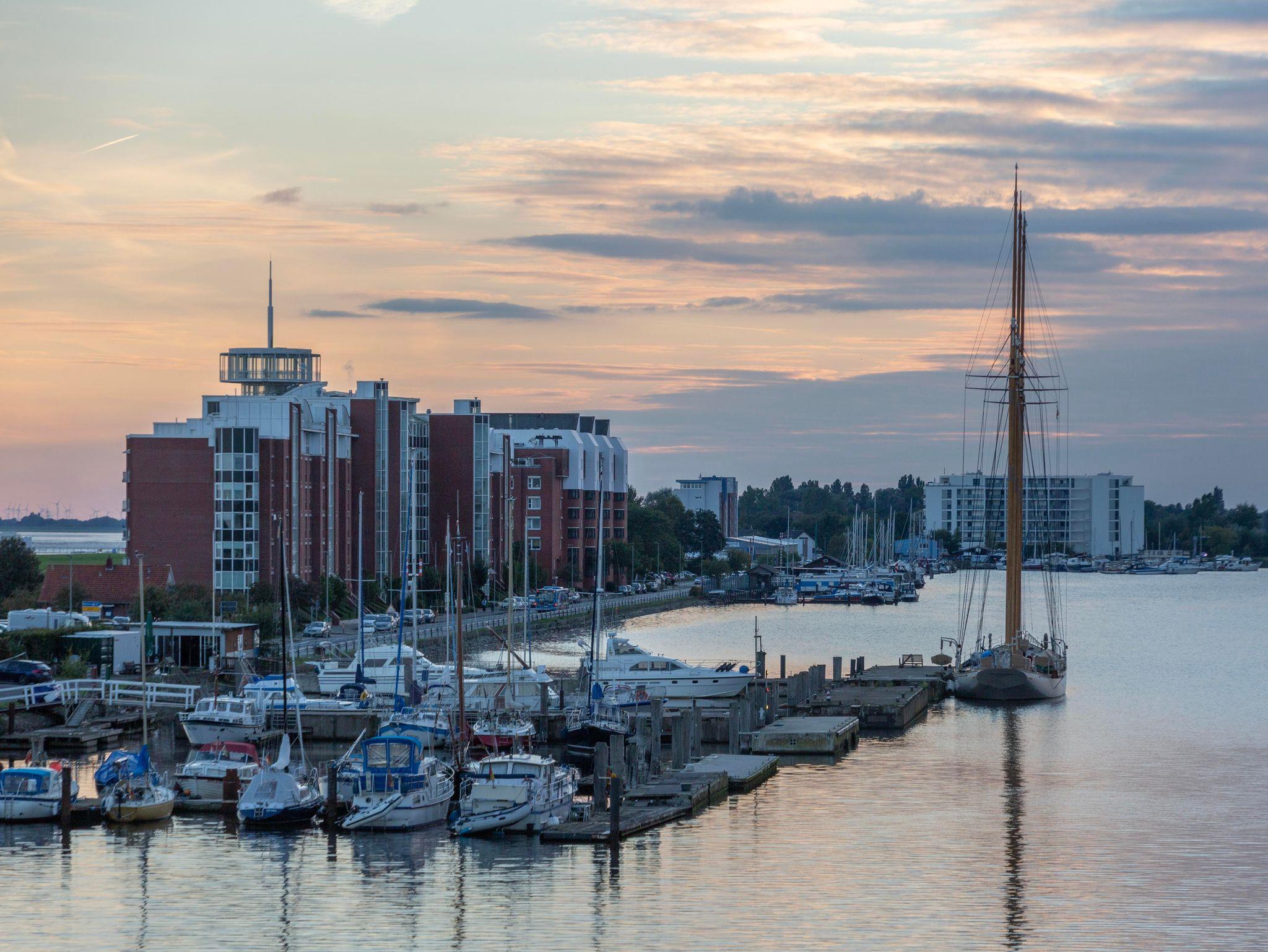Auf der einen Seite der große Hafen und auf der anderen Seite derJadebusen - mehr Wasser geht nicht !