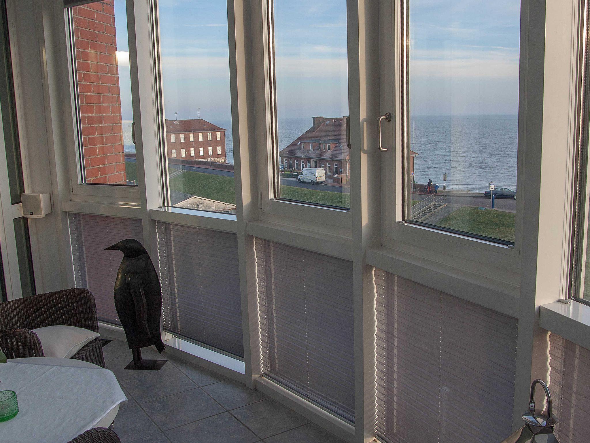 Das schön ausgestattete Schlafzimmer mit Blick auf die Nordsee, sowie das moderne Bad mit großzügiger Dusche und einer kleinen Waschmaschine lassen den Aufenthalt zum Urlaubserlebnis werden.
