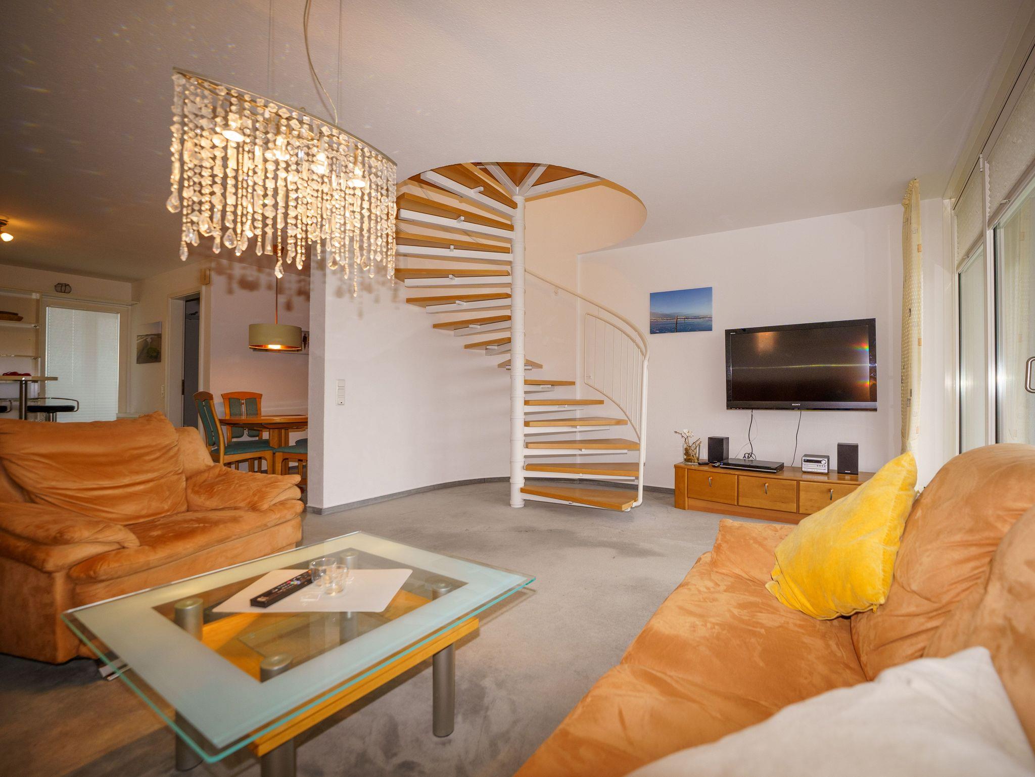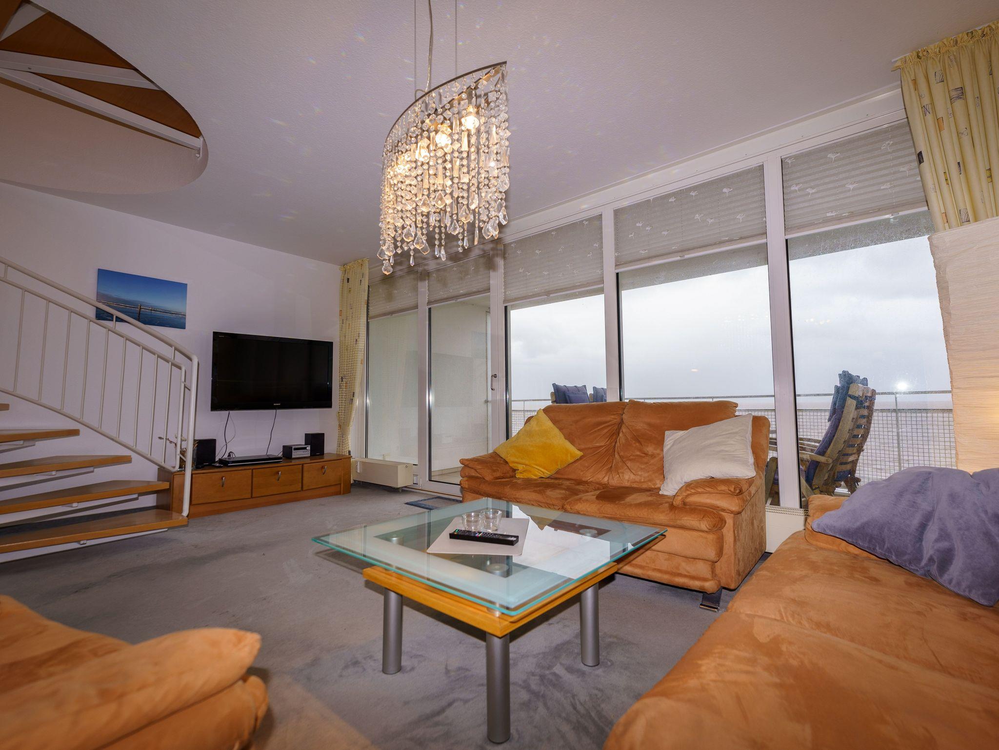 Entspannen Sie sich in dieser gemütlich eingerichteten Maisonette-Ferienwohnung, die im Helgolandhaus im fünften Stock zu finden ist. Das Helgolandhaus ist eine große Eigentümerwohnanlage, welche einen rücksichtsvollen Umgang von Gästen und Mietern sowie Eigentümern fordert. Direkt am Deich gelegen, genießen Sie vom Wohnzimmer aus den weiten Blick über die Nordsee. Vom Küchenfenster aus schweift der Blick über den großen Hafen von Wilhelmshaven - Wasser, wohin man sieht.