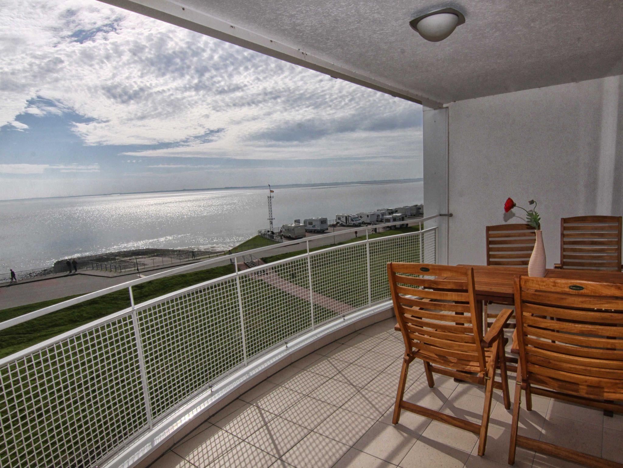 Der große überdachte Südbalkon lädt zum Verweilen ein. Den Wechsel der Gezeiten erleben Sie hier hautnah.