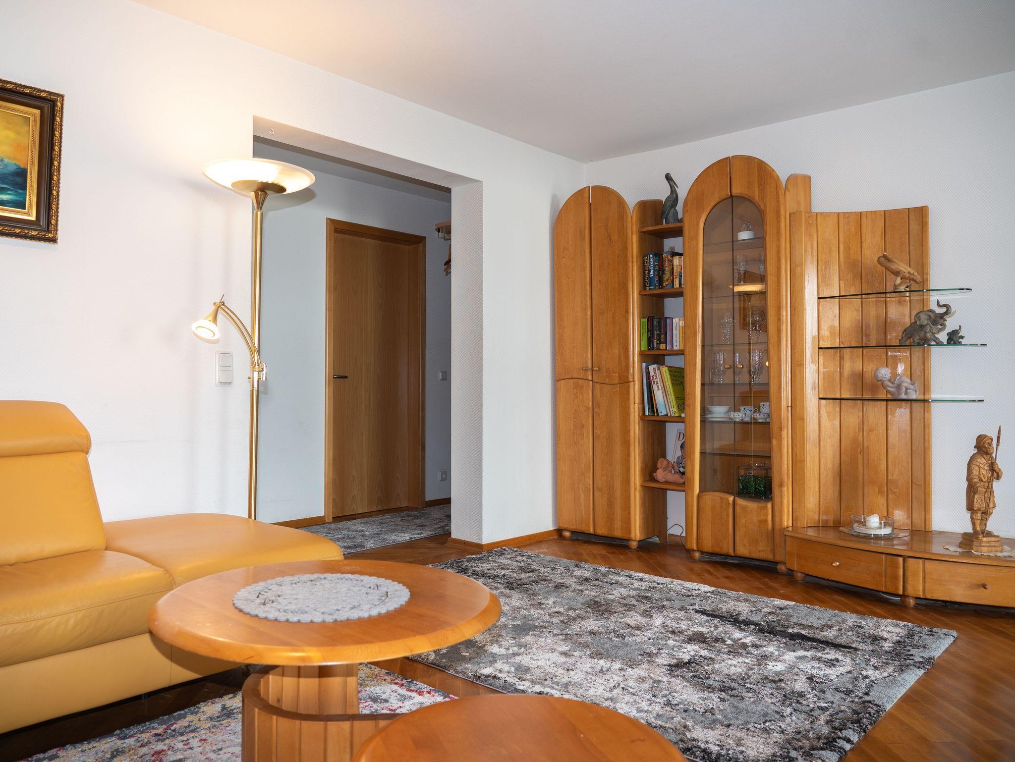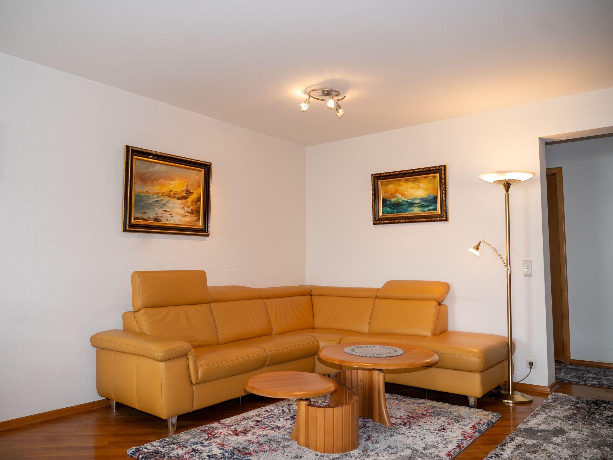 Diese Wohnung verfügt über einen großzügigen Wohnbereich mit einer Essecke und einem schönen Balkon.